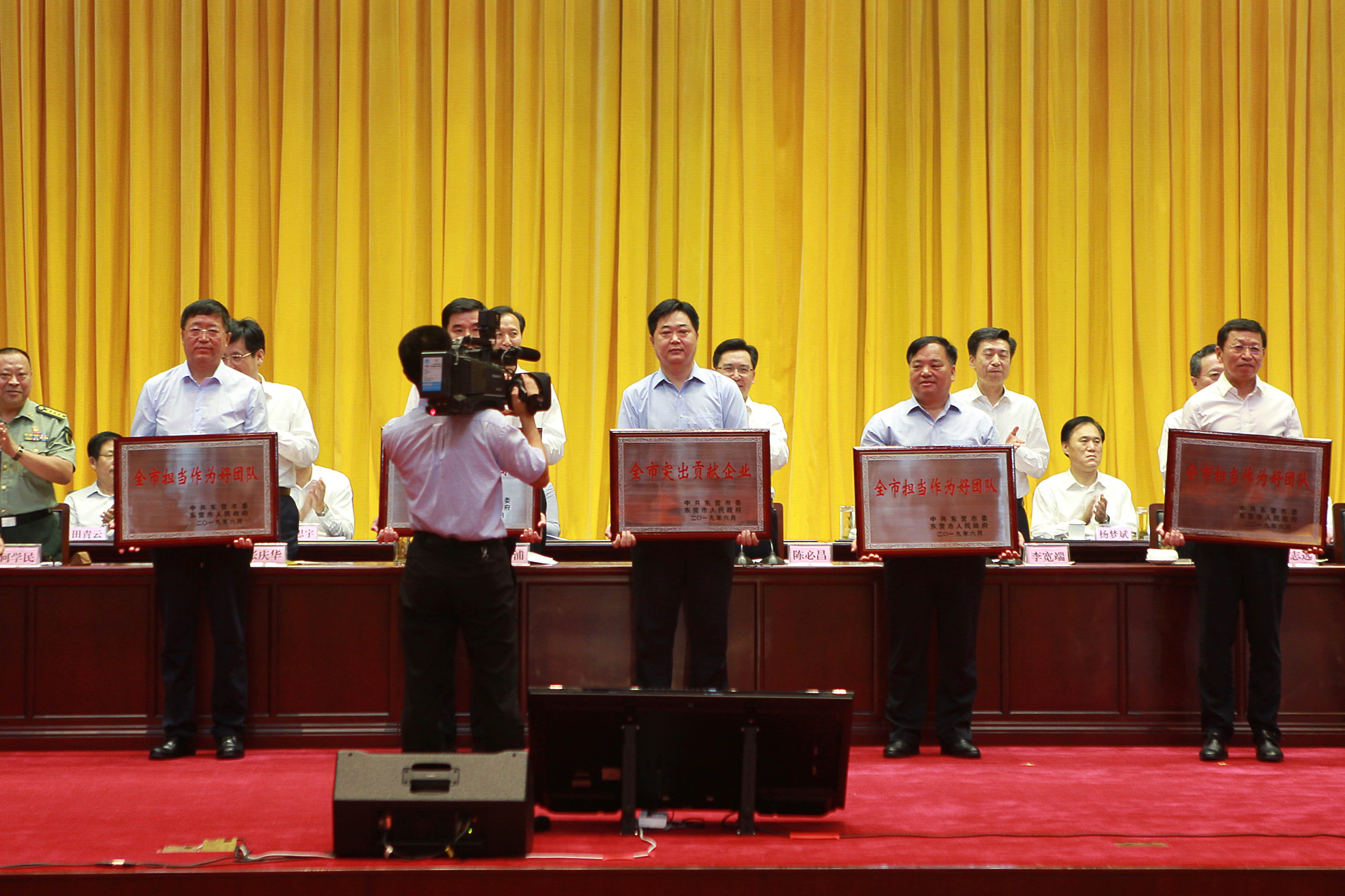 市委书记李宽端出席会议并讲话,市委副书记、市长赵志远主持会议,市委副书记、利津县委书记陈必昌宣读市委、市政府《关于表彰奖励“担当作为、狠抓落实”大竞赛、大比武先进集体和先进个人的通报》、市委《关于表彰东营市优秀共产党员、优秀党务工作者、先进党组织的决定》。市人大常委会主任郑建军,市政协主席陈泽浦等出席。万达集团董事局主席尚吉永参加会议并上台领奖。