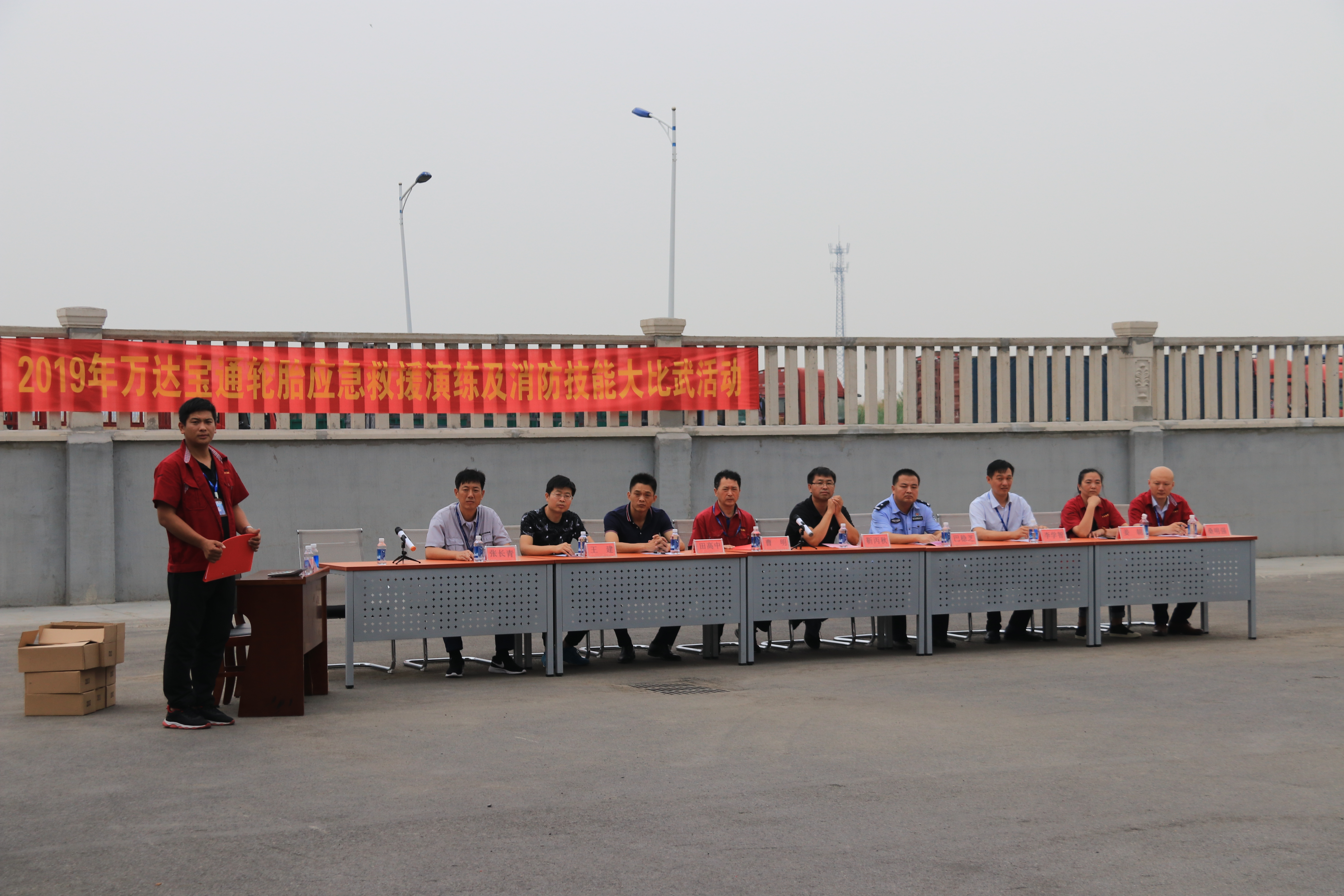 全钢轮胎公司董事长张学山、总经理苟增亮,半钢轮胎公司董事长曹明,工程胎公司董事长苟海滨,集团公司战略与科技管理部副主任李学智,橡胶集团安保部经理姜朝、综管部经理桑明强及垦利区兴隆街道、辖区安监站、派出所相关负责人、各公司部门车间负责人现场观摩了应急演练并进行打分评比;随后分别在全钢仓库广场、半钢仓库广场举行了防护服及正压式空气呼吸器穿戴负重跑计时比赛及推车式灭火器灭火接力比赛。