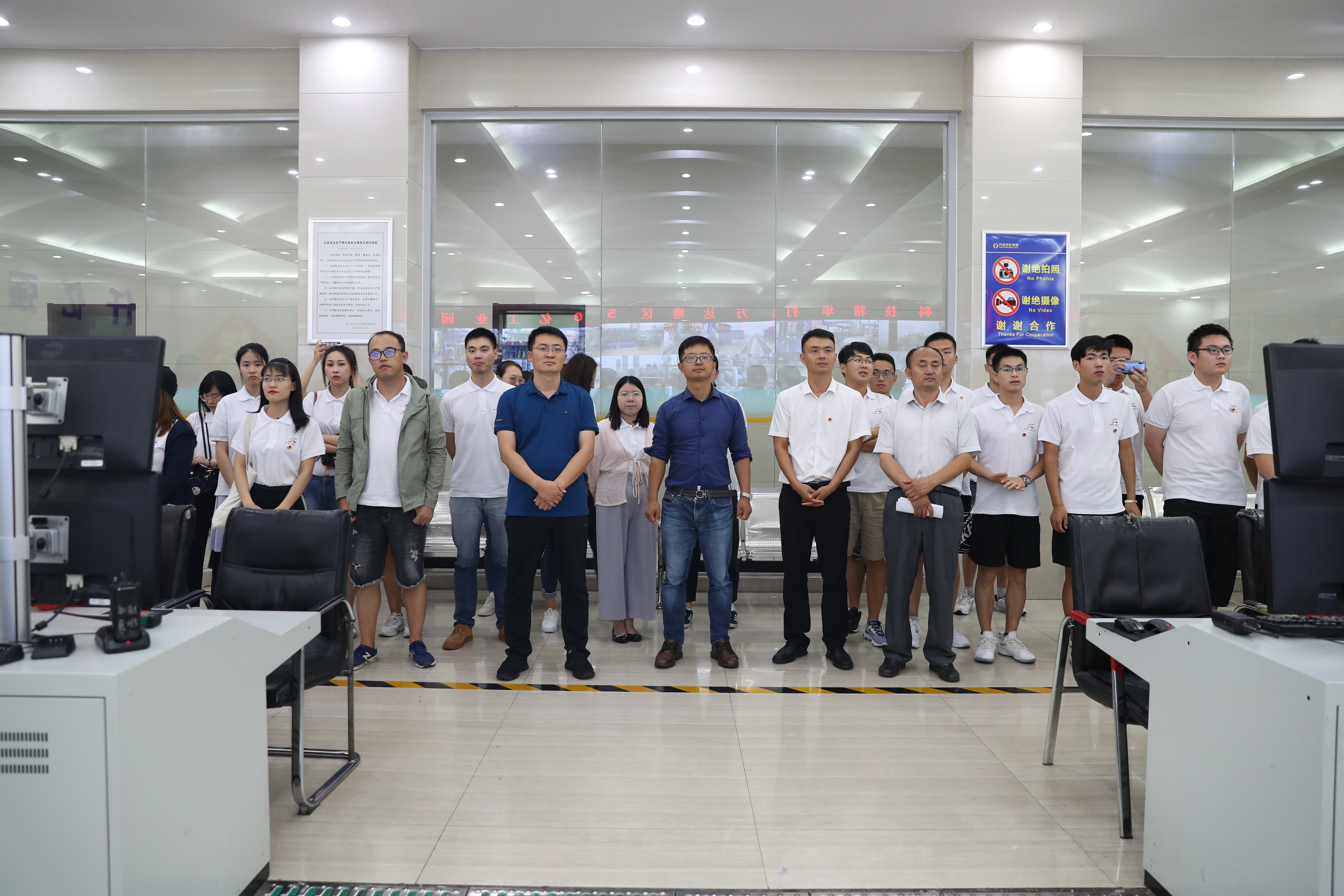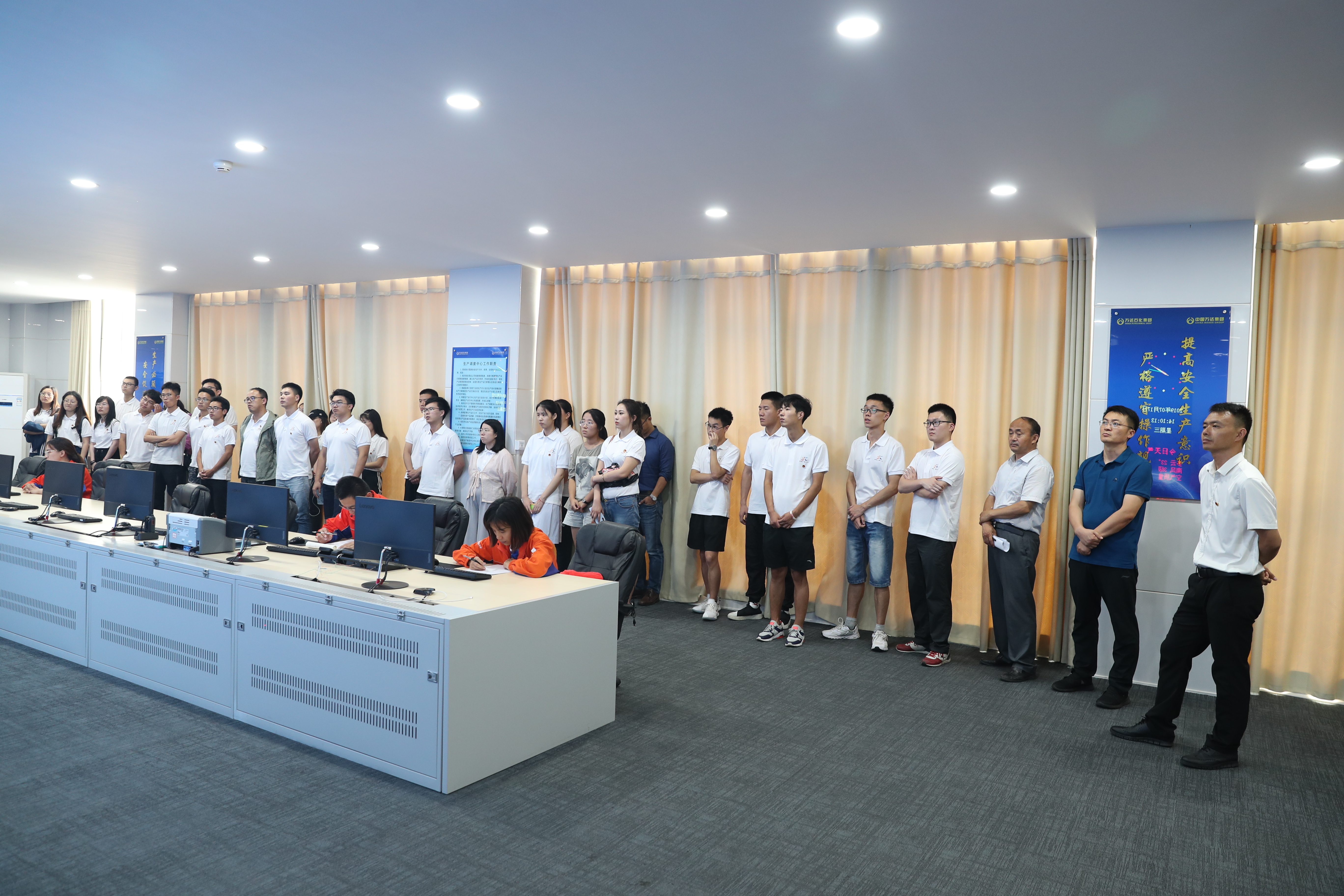 在讲解员的带领下,师生们先后参观了万达石化集团生产厂区与天弘公司中控室,踏进智能化、信息化的中控室,师生们纷纷对精密、准确的生产控制与调度系统表示赞叹,在认真听取相关车间班组长介绍后,对现代化石化产业生产流程与工艺有了进一步的认识,留下了深刻印象。