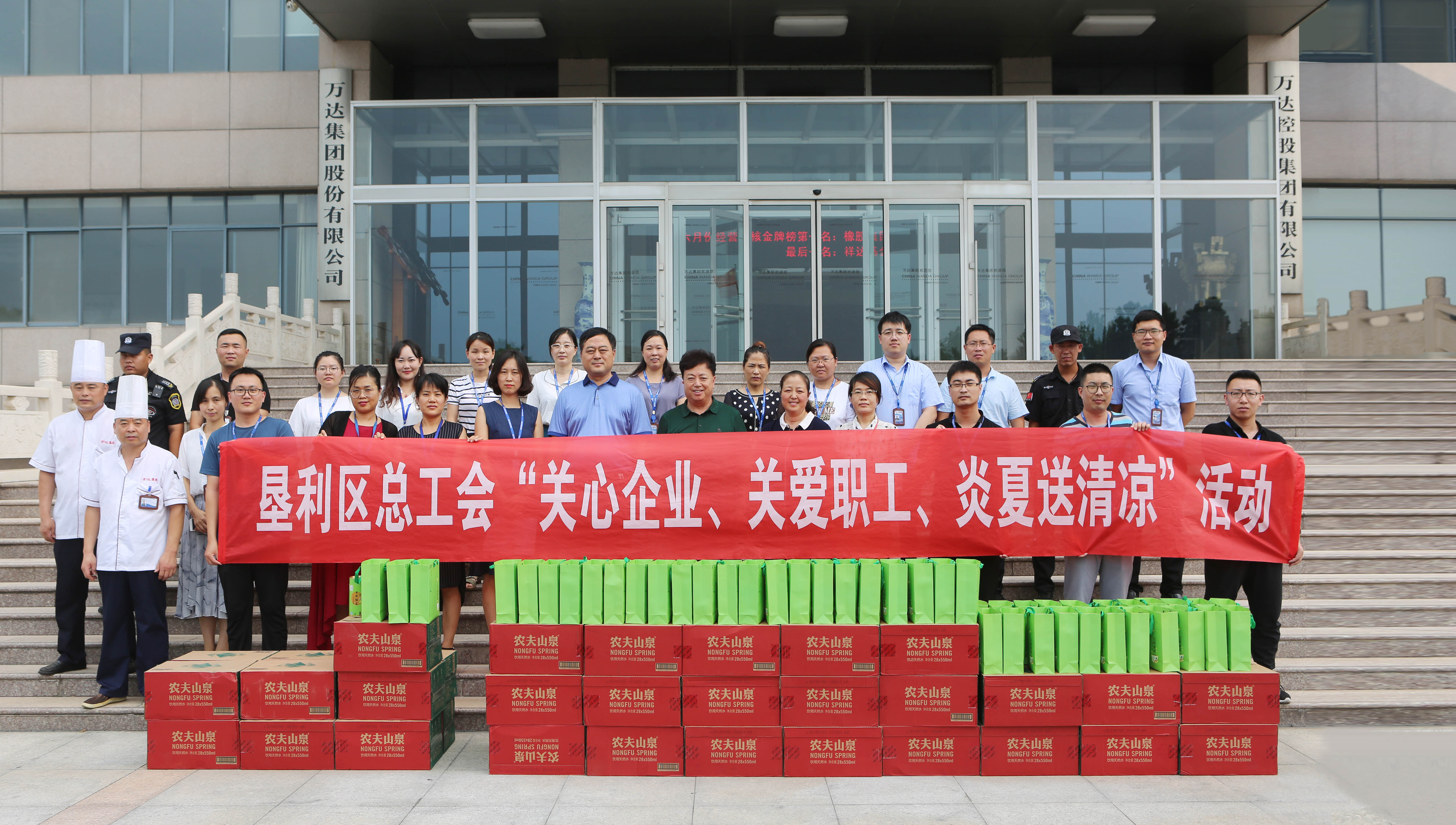 万达职工接到区总工会组织送来的慰问品纷纷表示,在炎炎夏日,虽然感到闷热难受,但感受到了工会组织带来的丝丝清凉,保证一定会克服酷暑高温,坚守岗位,尽职尽责,积极投身于工作生产中。