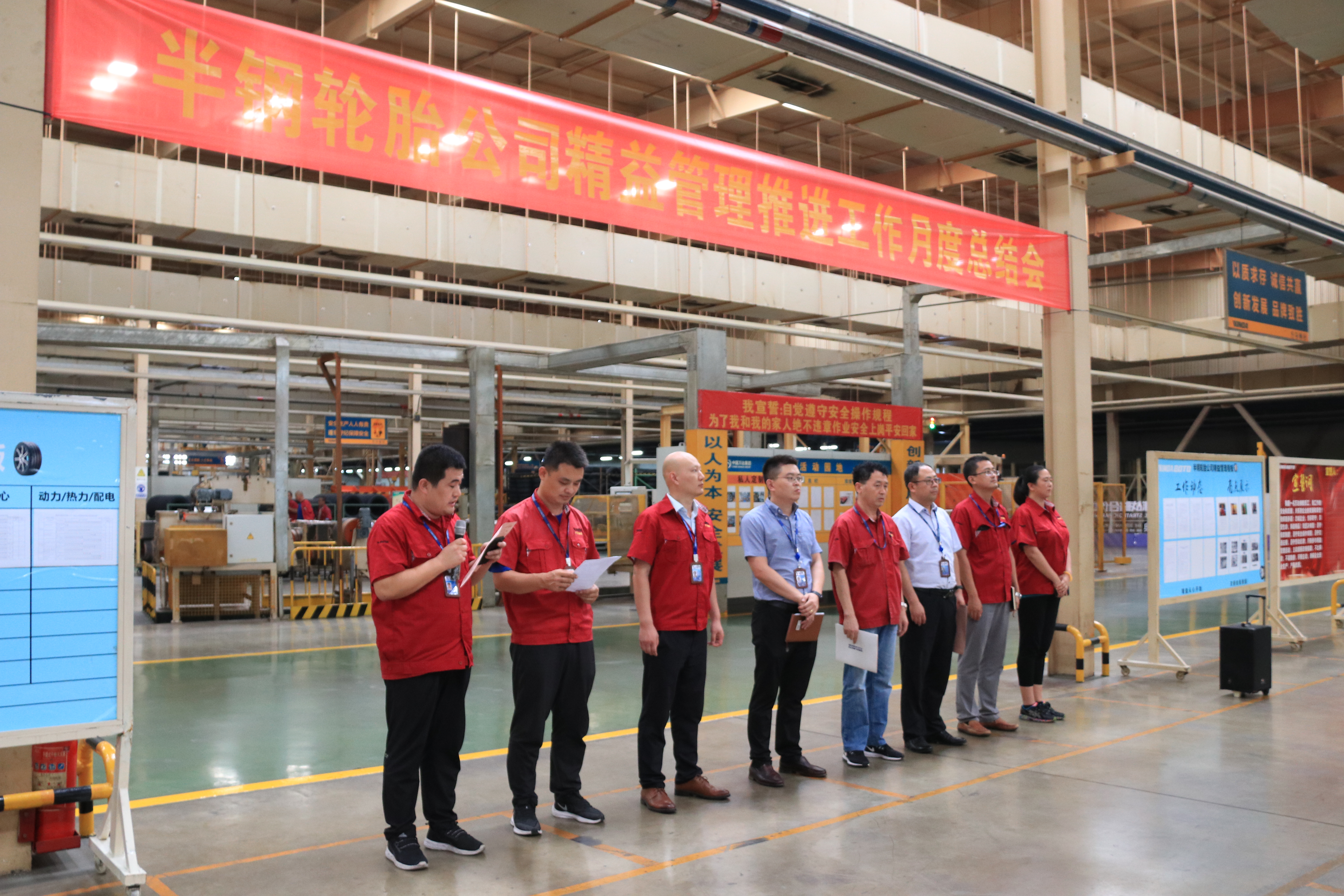 8月5日下午,橡胶集团半钢轮胎公司召开7月份精益管理工作总结会。分析、总结7月份精益管理活动开展情况,表彰和奖励工作中涌现出的优秀集体和个人,安排部署8月份的精益管理工作。半钢轮胎公司董事长曹明,集团公司总裁办供应链管理部总监闫圣利、发展规划部总监单小晶,半钢轮胎公司总经理张辉,橡胶集团综管部经理桑明强、安全环保部经理姜朝和半钢公司生产部经理徐兴国、设备部经理宋月涛、班组长以上人员及中班全体人员共200余人参加了活动。