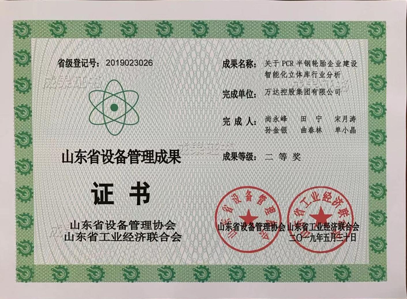 近日,山东省设备管理协会、山东省工业经济联合会联合发布“山东省设备管理成果”奖,由橡胶集团与集团公司总裁办共同申报的“关于PCR半钢轮胎企业建设智能化立体库行业分析”荣获山东省设备管理成果“二等奖”。