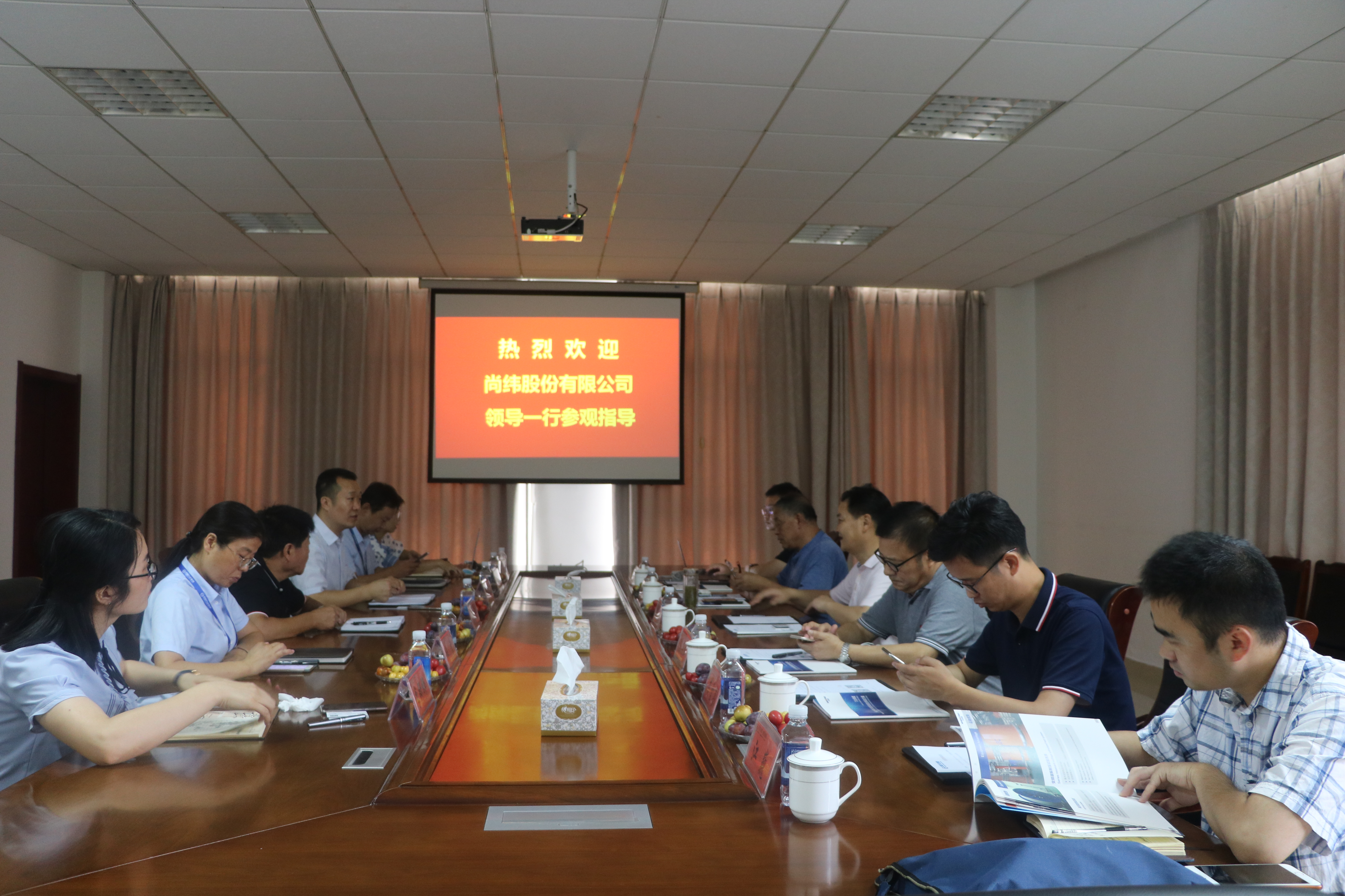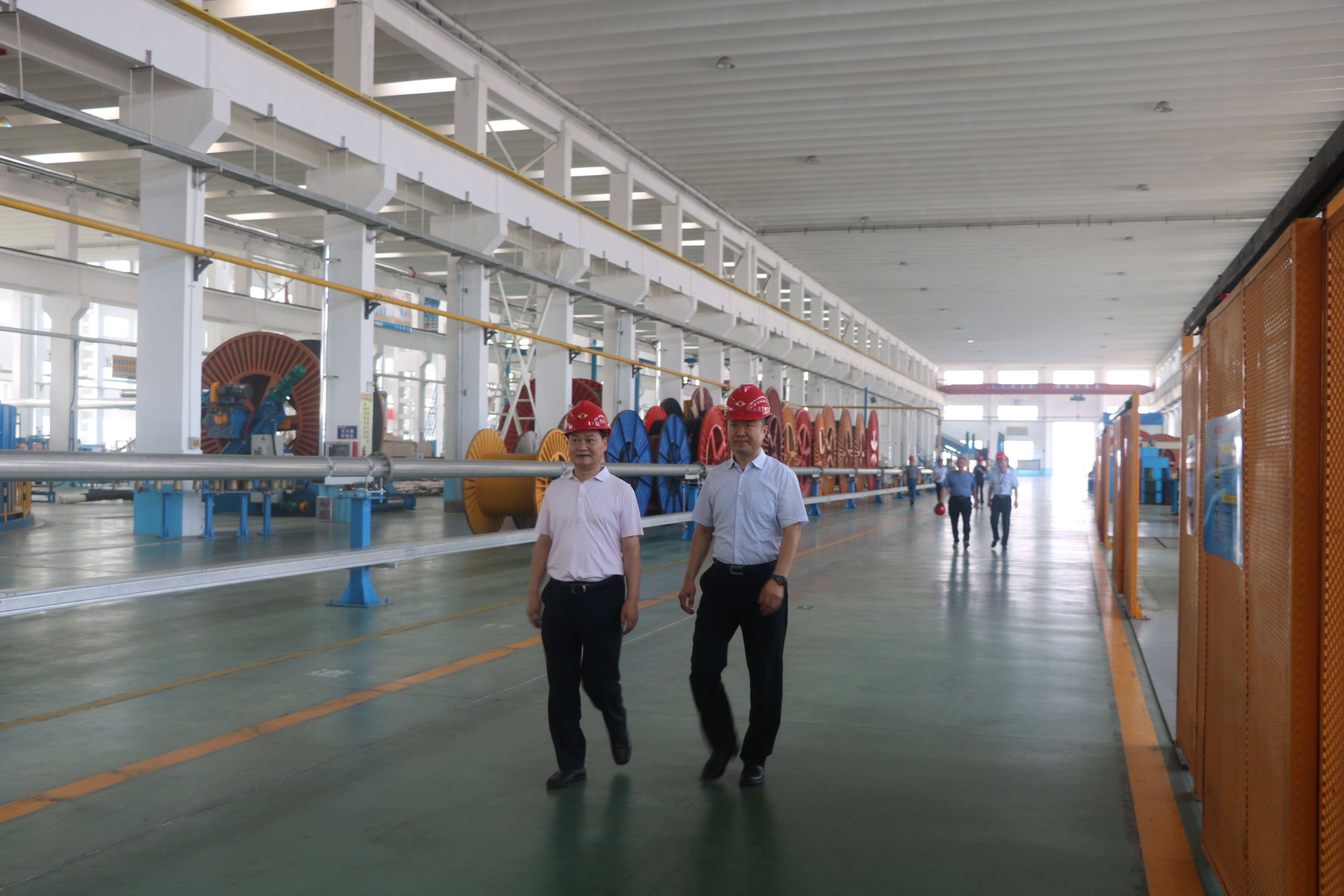 8月27日,尚纬股份有限公司总经理盛业武一行5人前来万达海缆公司参观考察。集团公司董事局董事、副总裁、万达海缆公司董事长巴银华,总裁助理、万达海缆公司总经理孙家伟及相关人员陪同考察。