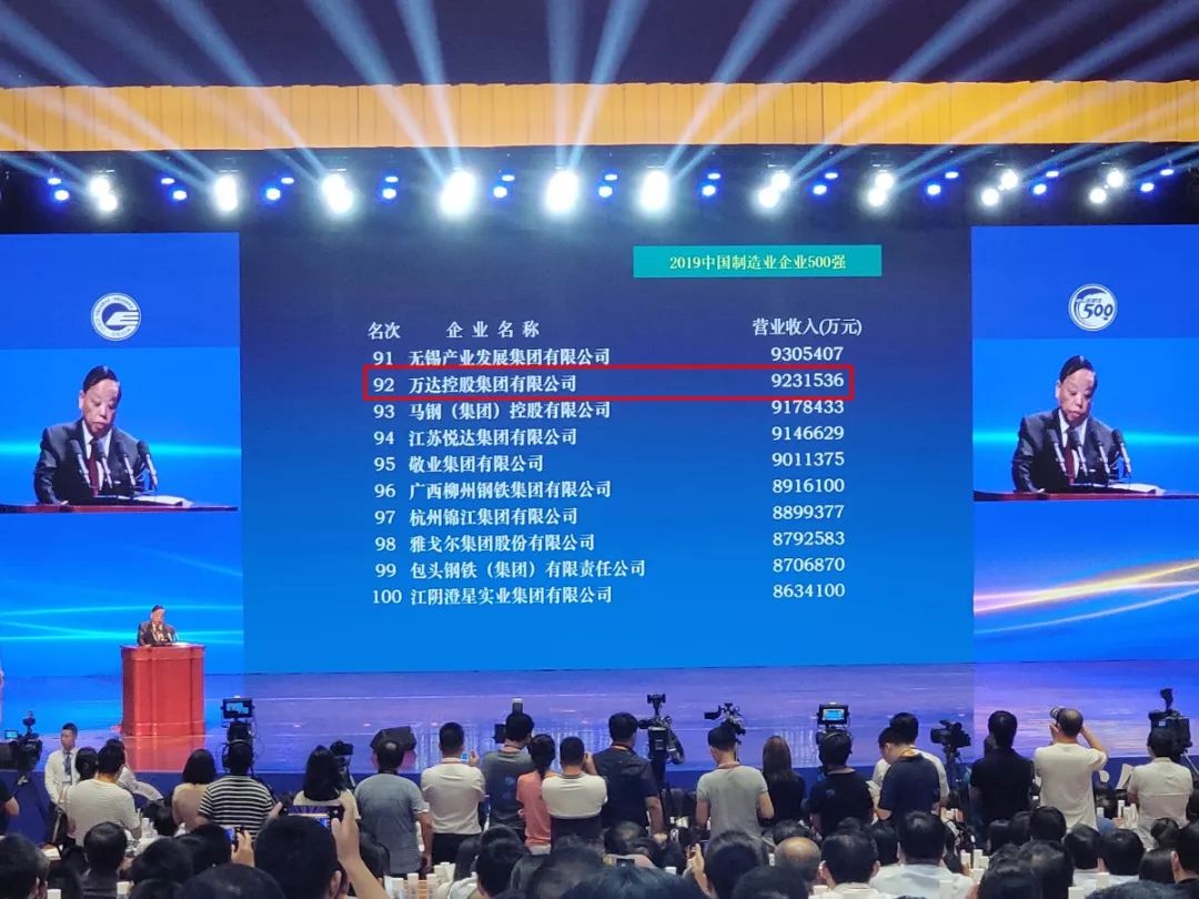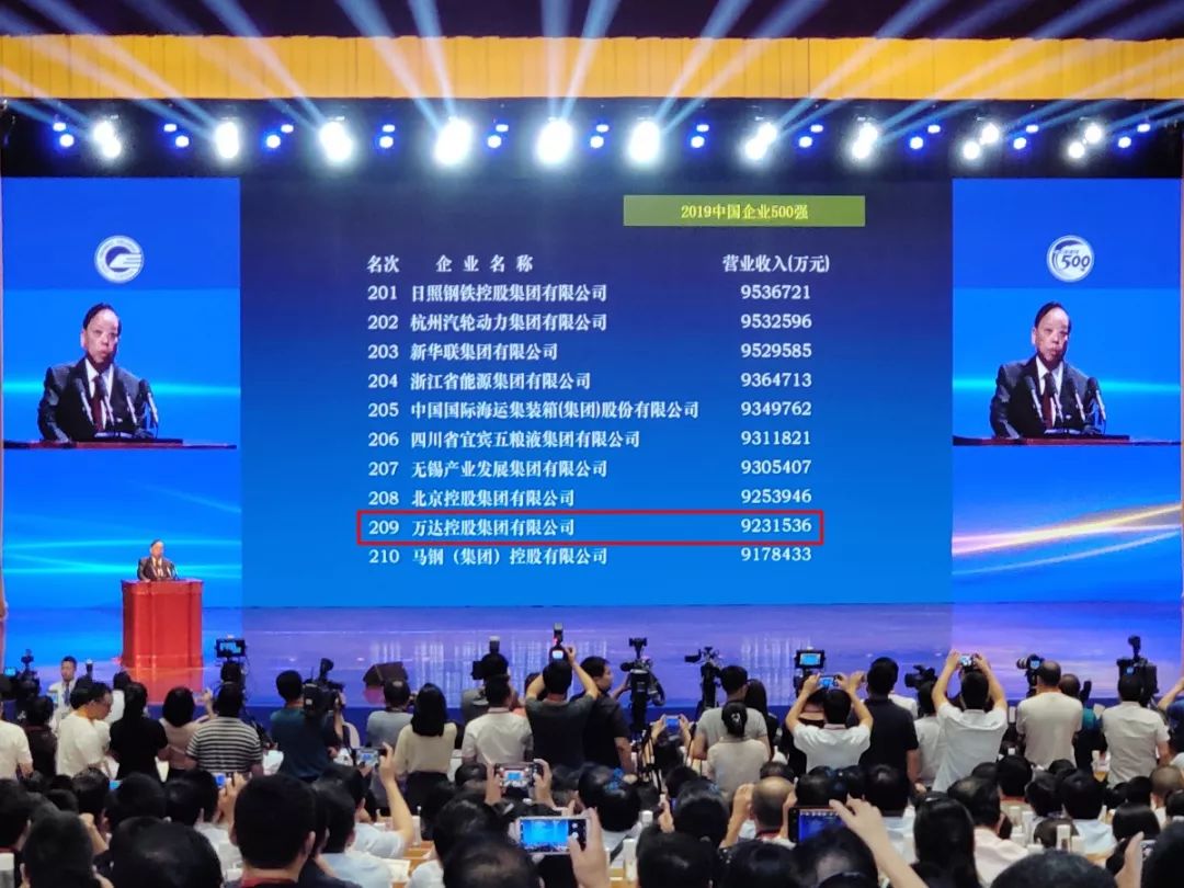 中国万达集团荣列中国企业500强第209位,中国制造业企业500强92位,自2009年以来,中国万达集团已经连续11年进入中国企业500强,2019年排名较初次进入提升244位。