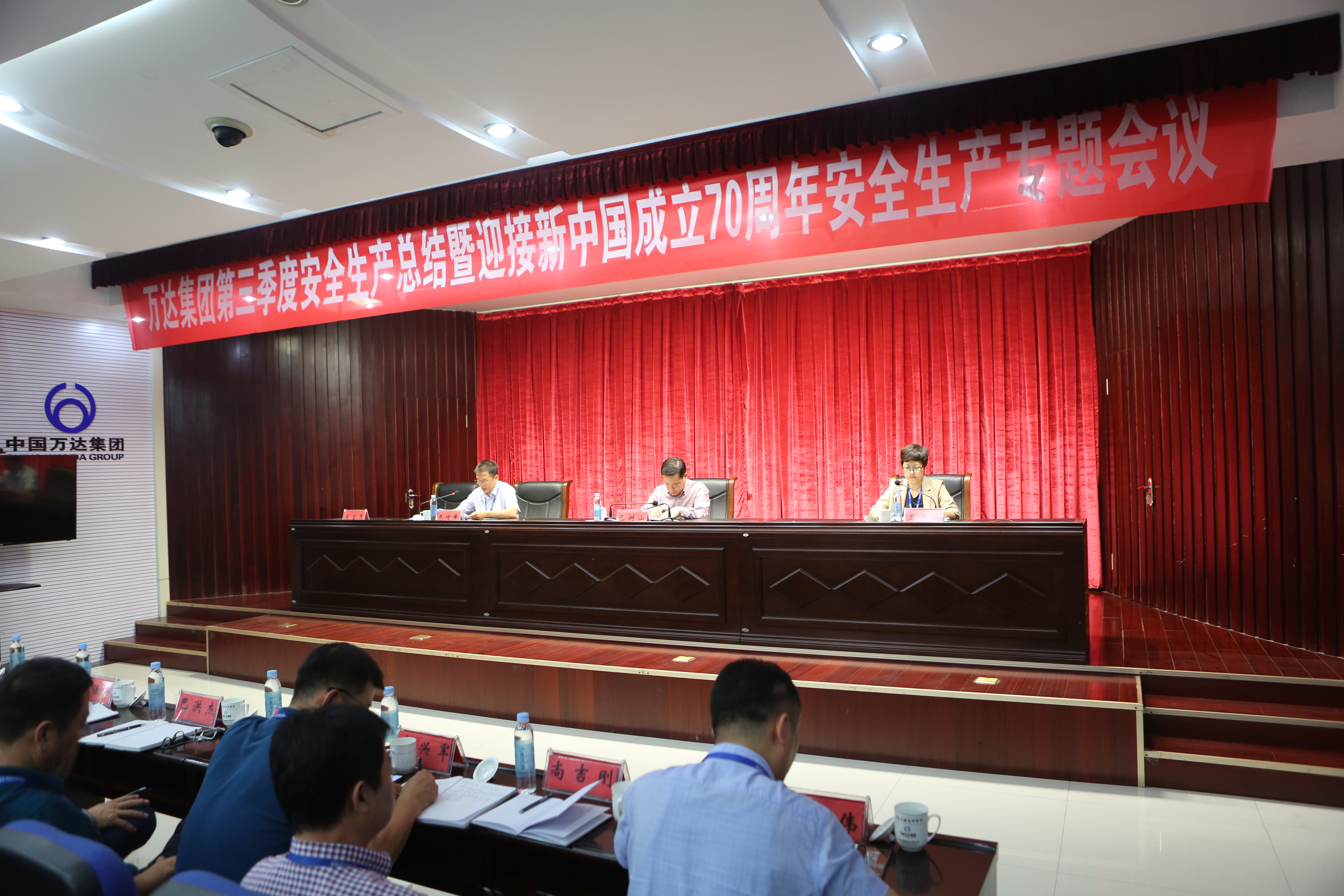 9月19日下午,万达集团2019年第三季度安全生产总结暨迎接新中国成立70周年安全生产专题会议顺利召开。集团公司轮值执行总裁、董事、副总裁,各下属集团、经营管理单位董事长、执行总裁(总经理),各集团下属公司董事长、总经理,集团职能部室第一负责人,集团安委会成员,各单位分管安全环保领导,安全环保重点区域负责人,安全环保经理,安全环保专员共计123人参加会议。