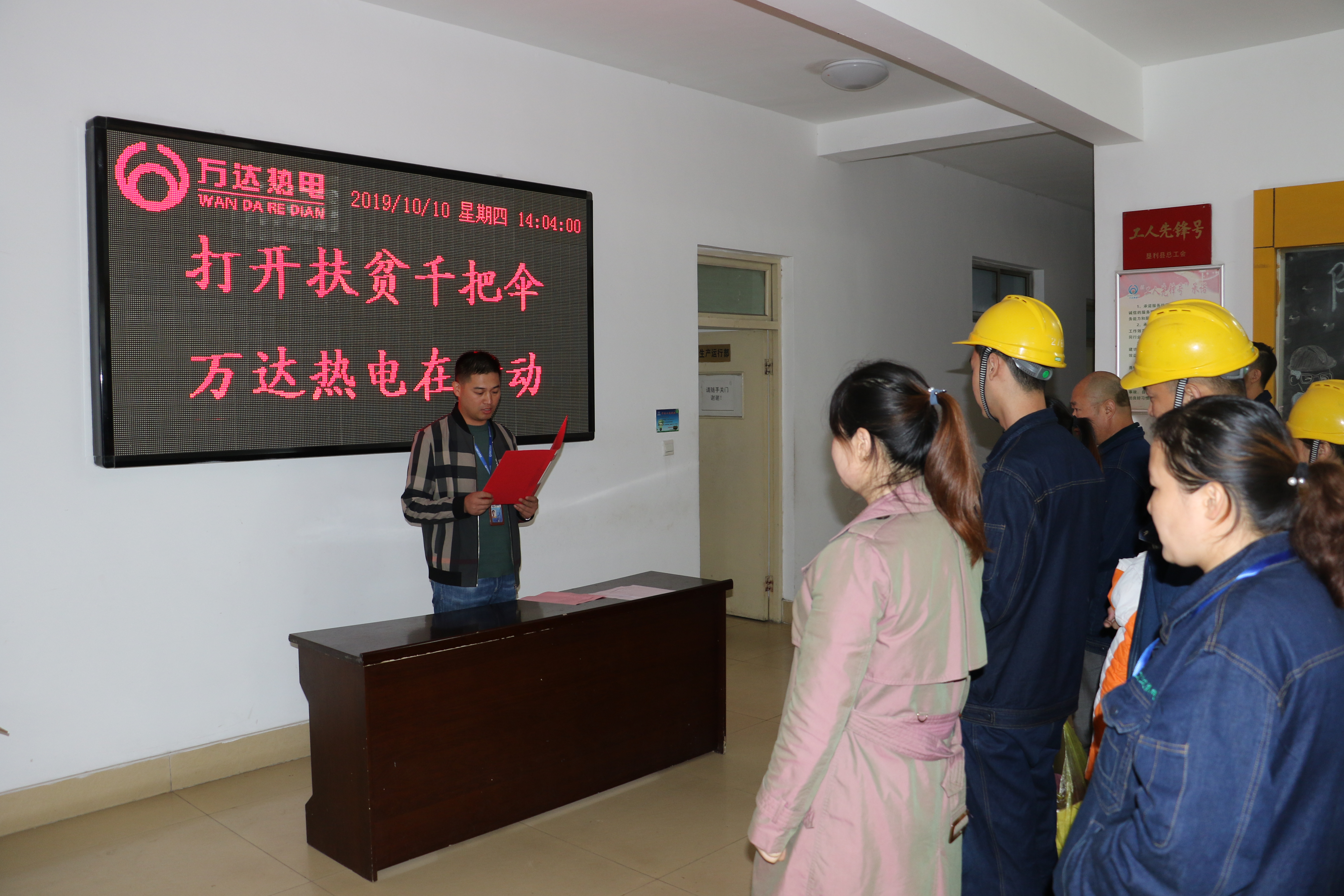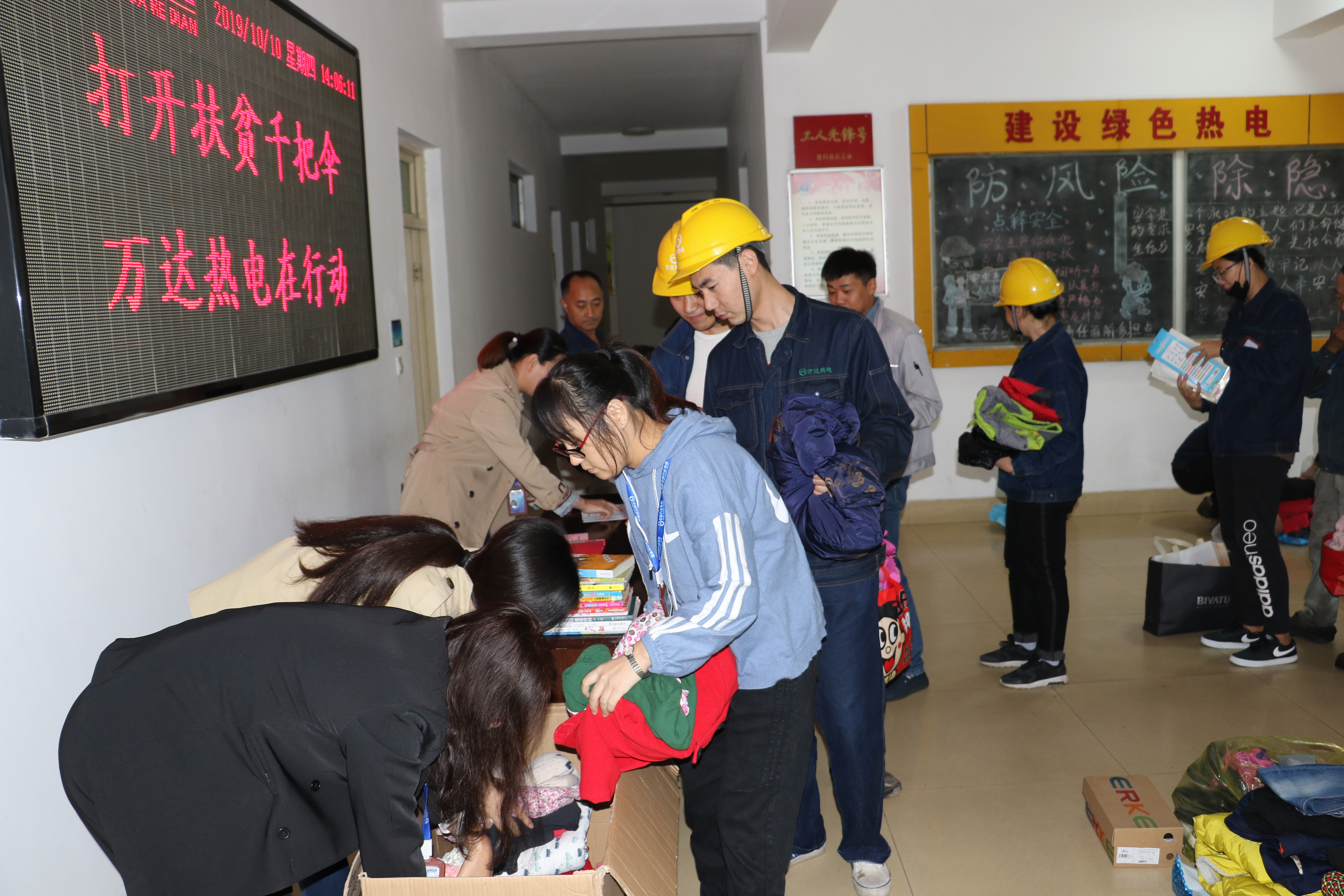 10月10日下午,热电公司在主控楼一楼大厅组织开展了向新疆疏勒县贫困群众捐赠活动,热电公司副总经理杨同光,各部门负责人及捐赠职工代表参加了本次活动。