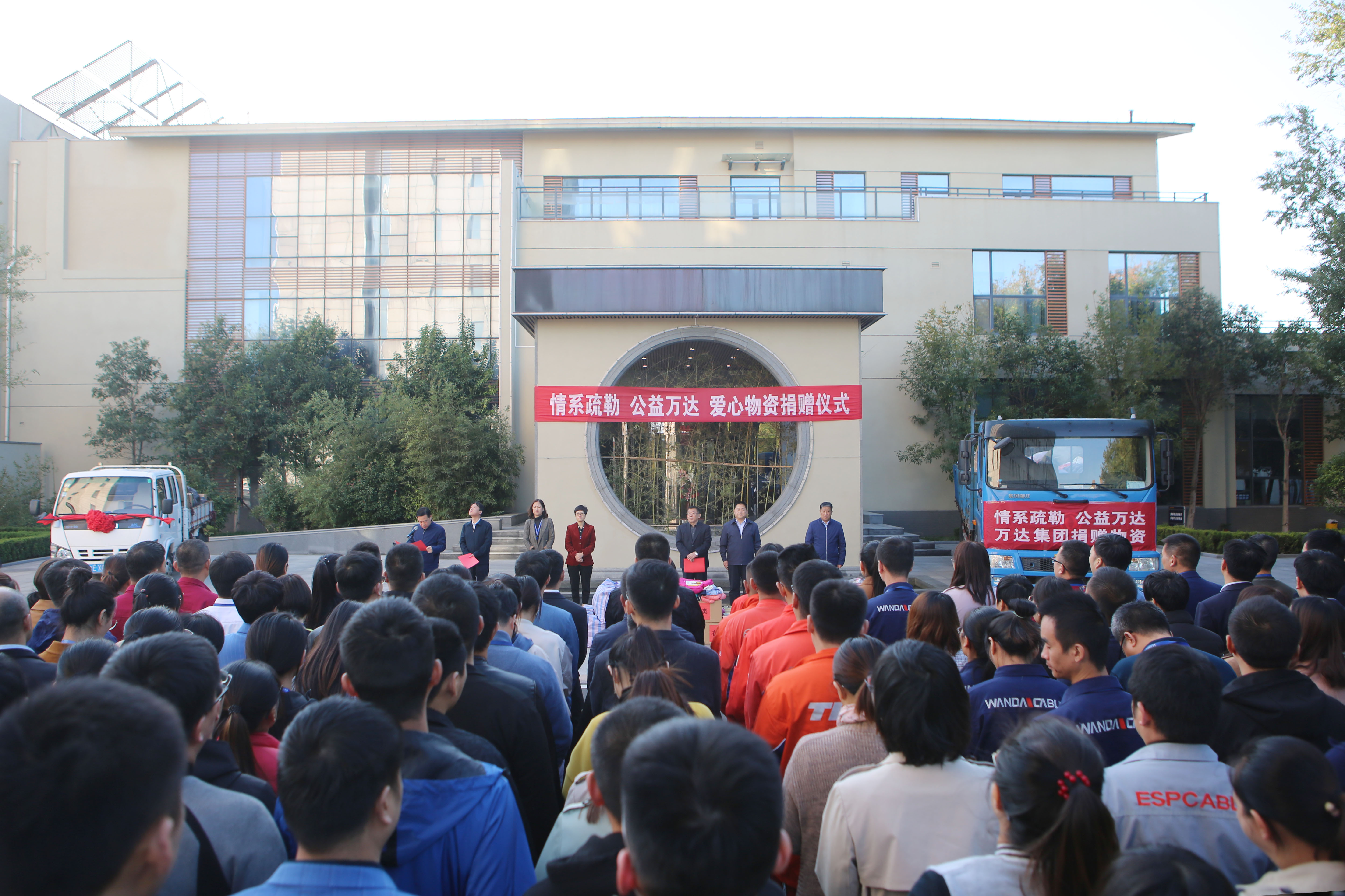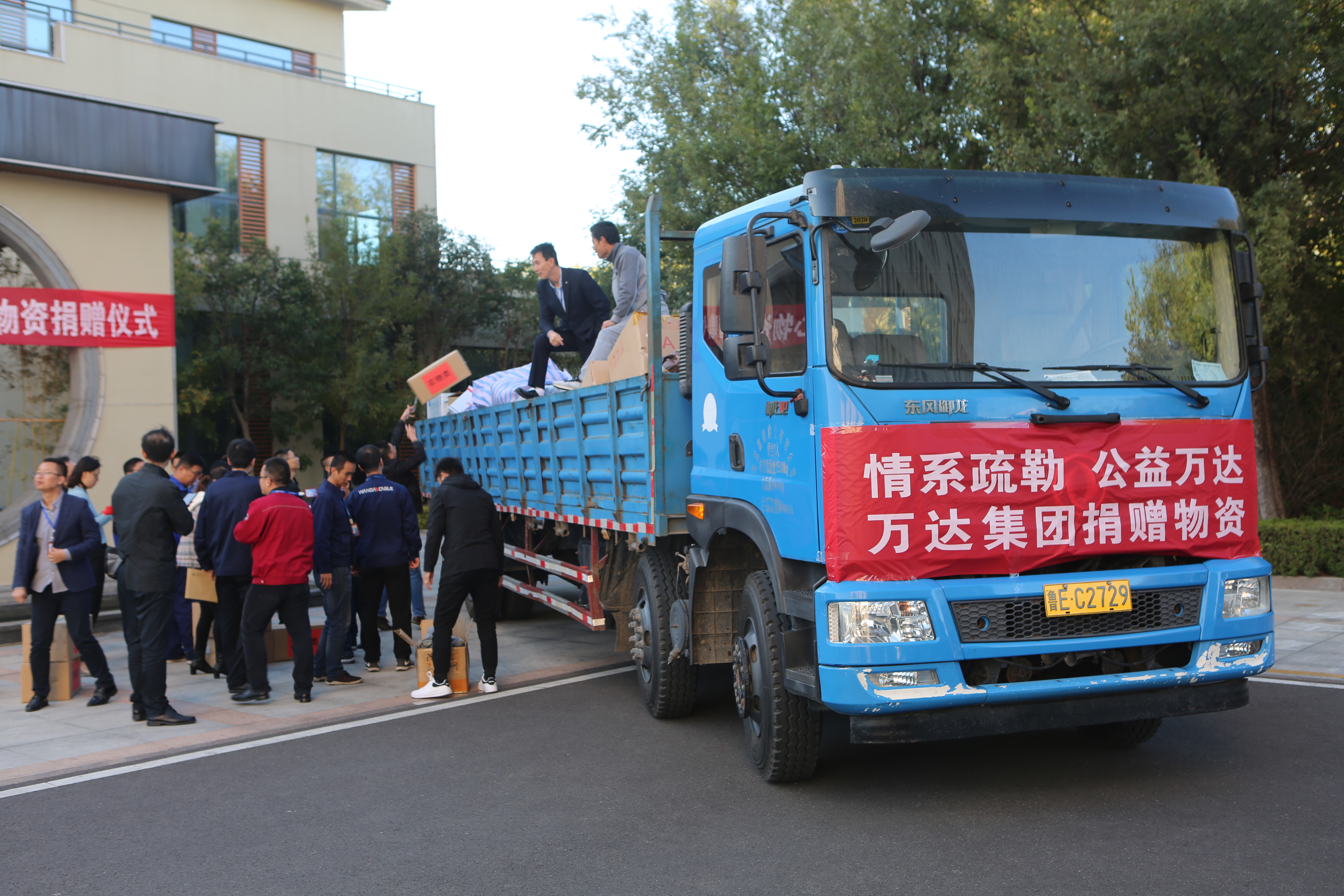 为贯彻落实习近平总书记关于脱贫攻坚的一系列重要讲话精神和省、市委有关脱贫攻坚工作的各项决策部署,积极响应我市对口支援新疆喀什地区疏勒县工作。进一步弘扬关注社会公益事业、奉献社会爱心的优良传统,10月14日,万达集团举行“情系疏勒 公益万达”爱心物资捐赠仪式,以实际行动为贫困地区群众奉献一份爱心,贡献一份力量。