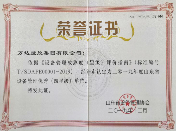 近年来,万达集团建立了涵盖设备、电气、仪表等十余项专业的专家智库项目,通过专家智库平台,各专业领域的专家形成合力,为项目论证和建设、故障诊断和处置及管理改进献计献策,打造专家诊断常态化、设备管理体系化、工作标准规范化的管理模式,确保集团各项目安全经济运行。同时,积极推行先进的设备管理理念“TPM”,先后在耐斯特炭黑公司推行一期/二期、半钢轮胎公司推行一期,导入6S管理、清除六源、可视化与定置化、点巡检、自主维护、故障管理、检修管理设备绩效及监测管理机制、自主维护深化、检维修管理体系深化、全优润滑管理等,并在中国设备管理大会获得“设备文宣创意奖”、“设备维护工具创意奖一等奖”、“2019年设备管理创新二等奖”、“TnPM设备管理杰出领袖奖”、“TnPM设备管理卓越推进者奖” ,入选《中国设备工程》杂志社智库专家等。在集团公司领导高度重视和全员参与下,将设备管理的知识、技术方法和信息控制能力融合在一起,实现了设备资产投资价值的最大化和运行效能的极限化。