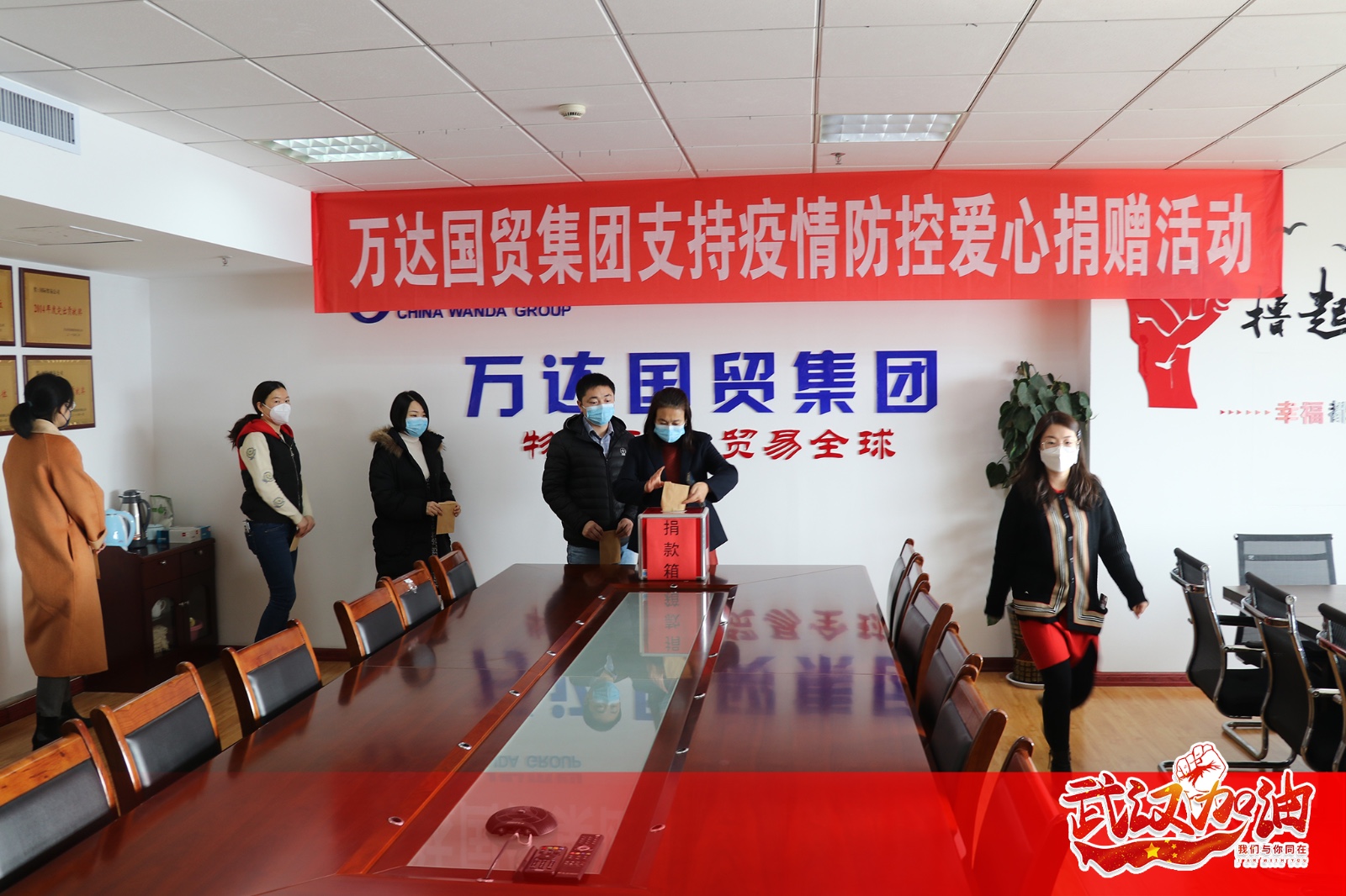 隔离疫情,但不隔离爱。抗疫面前,万达人不当旁观者,不当局外人,纷纷伸出援手,献出爱心,为尽早打赢这场疫情防控阻击战贡献自己的力量。继昨日万达集团总部发起支持疫情防控爱心捐赠活动之后,公司上下积极响应,迅速掀起一股爱心捐赠热潮,现场捐赠、委托代捐、微信捐款……万达人通过各种捐款形式结成一张爱心网,将爱心与祝福带给疫情防控区、带给一线工作者,为抗击疫情尽一份绵薄之力,汇爱成海,共克时艰。