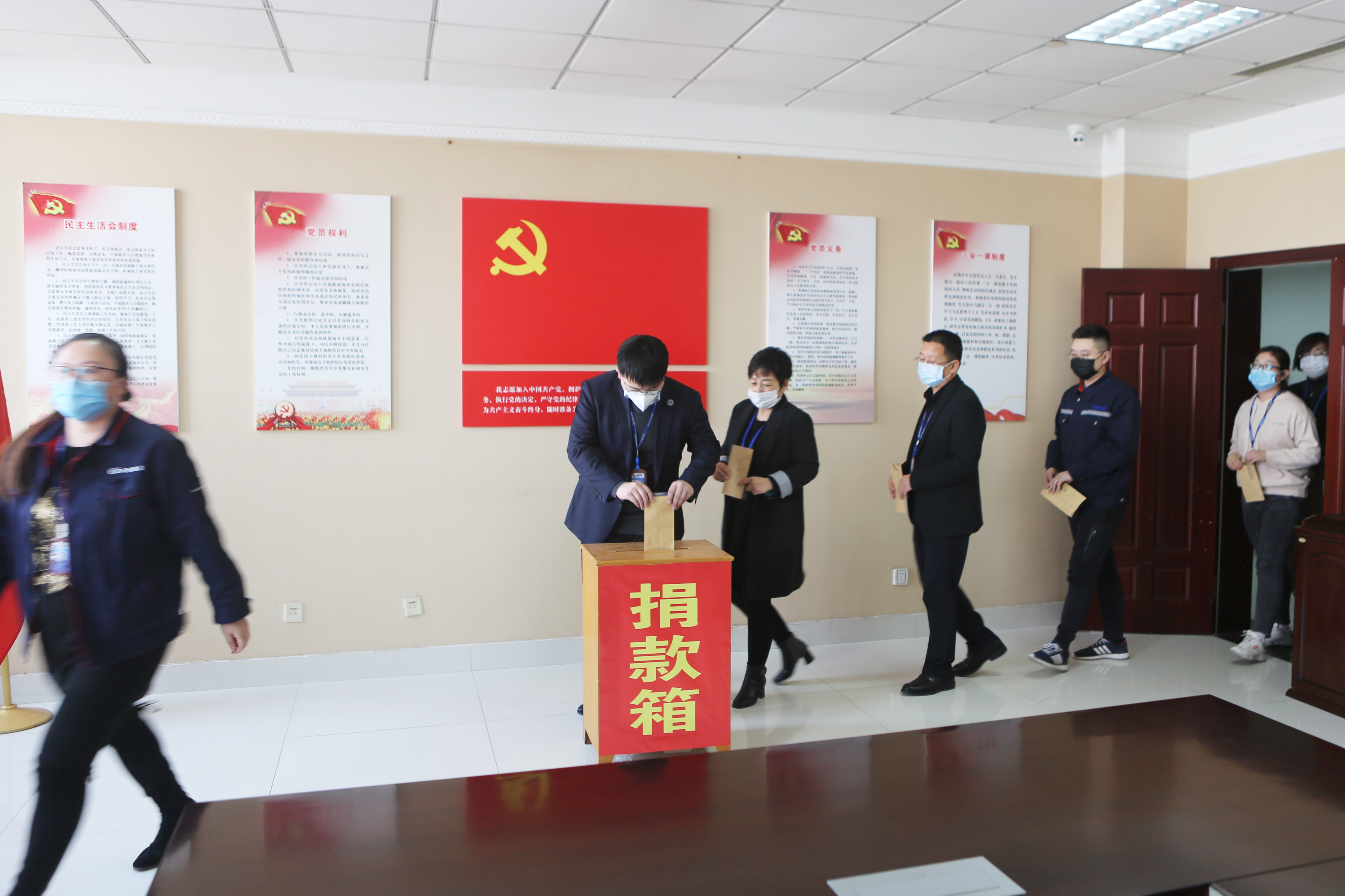 活动中,万达集团党组成员和高管带头,将一笔笔爱心款投入到捐款箱内,集团广大党员、预备党员积极响应,勇跃捐款,奉献爱心,助力战“疫”。用实际行动践行党员的使命担当和助力疫情防控的大爱情怀。在广大党员自发有序的踊跃响应下,大家的善心和爱意汇聚成汩汩暖流,充分发挥党组织的战斗员堡垒作用和党员先锋模范作用。