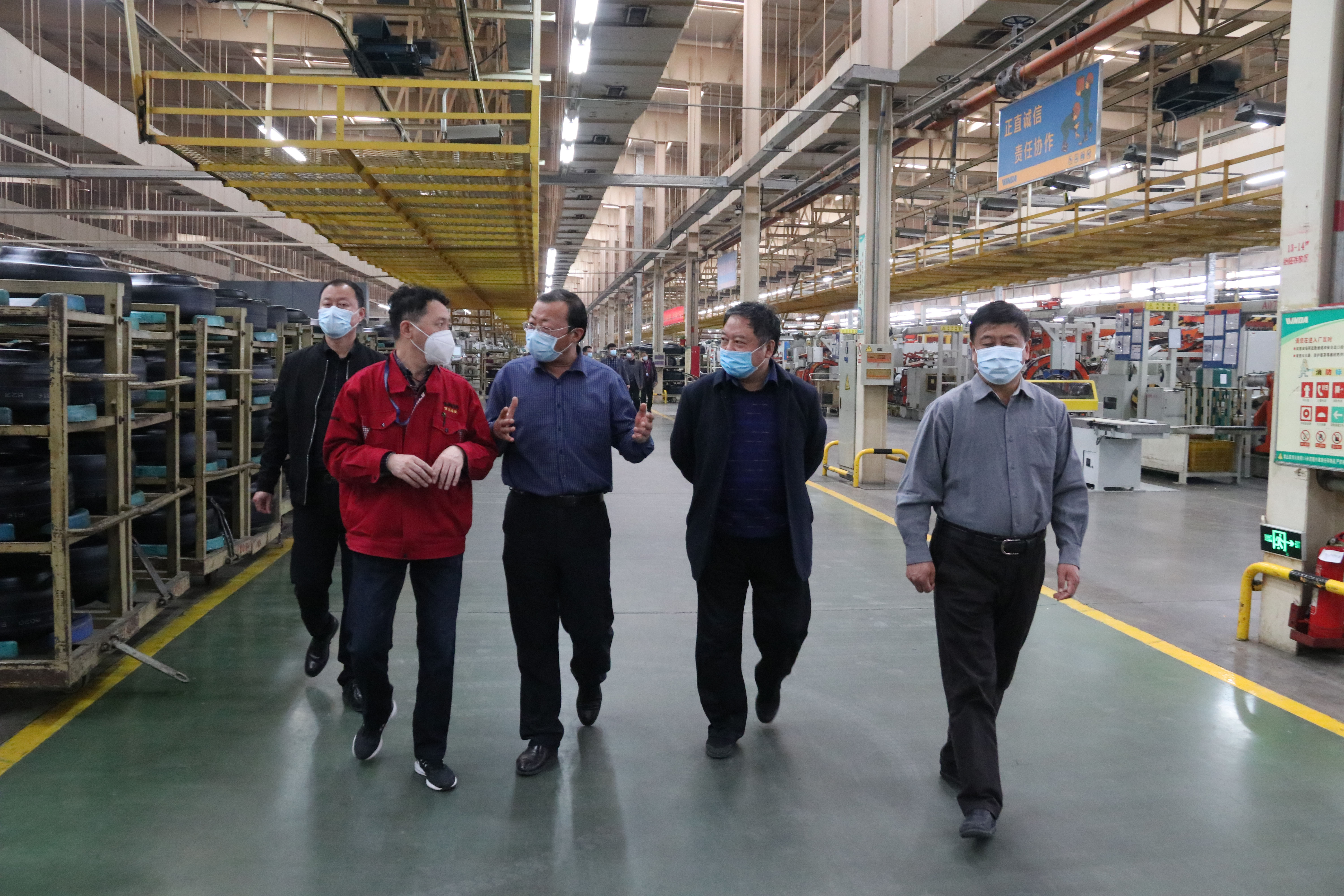 3月23日,山东省市场监管局疫情督导组组长药品稽查专员周元平一行在垦利区市场监管局四级调研员高荷青的陪同下到万达宝通轮胎公司督导疫情防控开展情况,橡胶集团半钢公司董事长曹明等陪同。