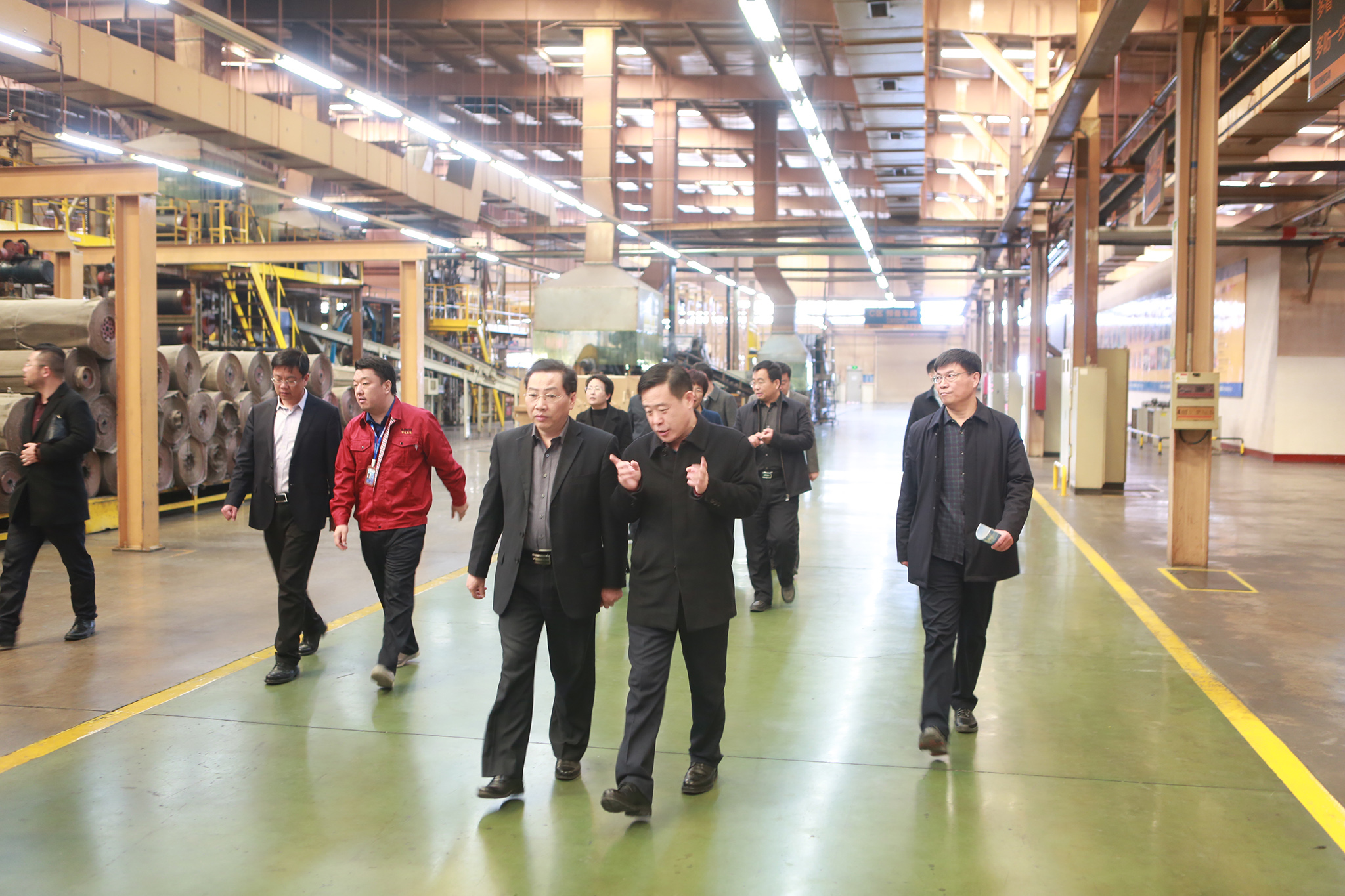 3月16日上午,湖南省委统战部副部长、省工商联书记陈潇及山东省工商联党组成员、副主席孙美菊一行莅临万达集团开展调研工作,市政协副主席、市工商联主席生钦勇,市委统战部副部长、市工商联党组书记、常务副主席高申廉,万达集团董事局董事、轮值执行总裁巴树山等陪同到橡胶集团半钢子午胎车间实地考察项目情况,考察团一行详细了解了万达集团的发展状况和未来发展规划。