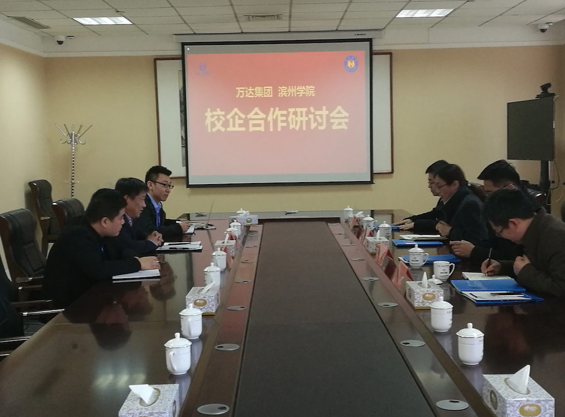 为创新企业与高校人才培养模式,精准专业与企业的利益共同点,建立企业与高校之间长期合作关系、实现互利共赢。3月16日上午,中国万达集团与滨州学院机电工程学院校企合作研讨会在万达集团万达大厦八楼会议室举行。总裁办总经理曲春林、人力资源部副总监陈国强亲切会见了滨州学院机电工程学院院长李宏伟教授、院长助理章健副教授、办公室主任李辉副教授、学生科科长宋立军一行,双方就进一步深化校企合作、深入推进协同创新进行了深入座谈。