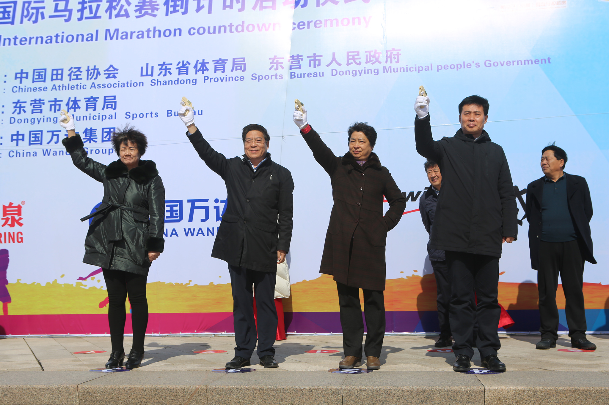 4月7日上午,中国万达·2018黄河口(东营)国际马拉松赛倒计时启动仪式在东营市园博园举行。市人大常委会副主任李永元,市政府副市长刘美华,市政协副主席张敏,中国万达集团董事局副主席尚建立,以及市体育局、市公安局、市卫计委、市城市管理局有关负责同志参加启动仪式。市政府副秘书长赵永刚主持仪式。