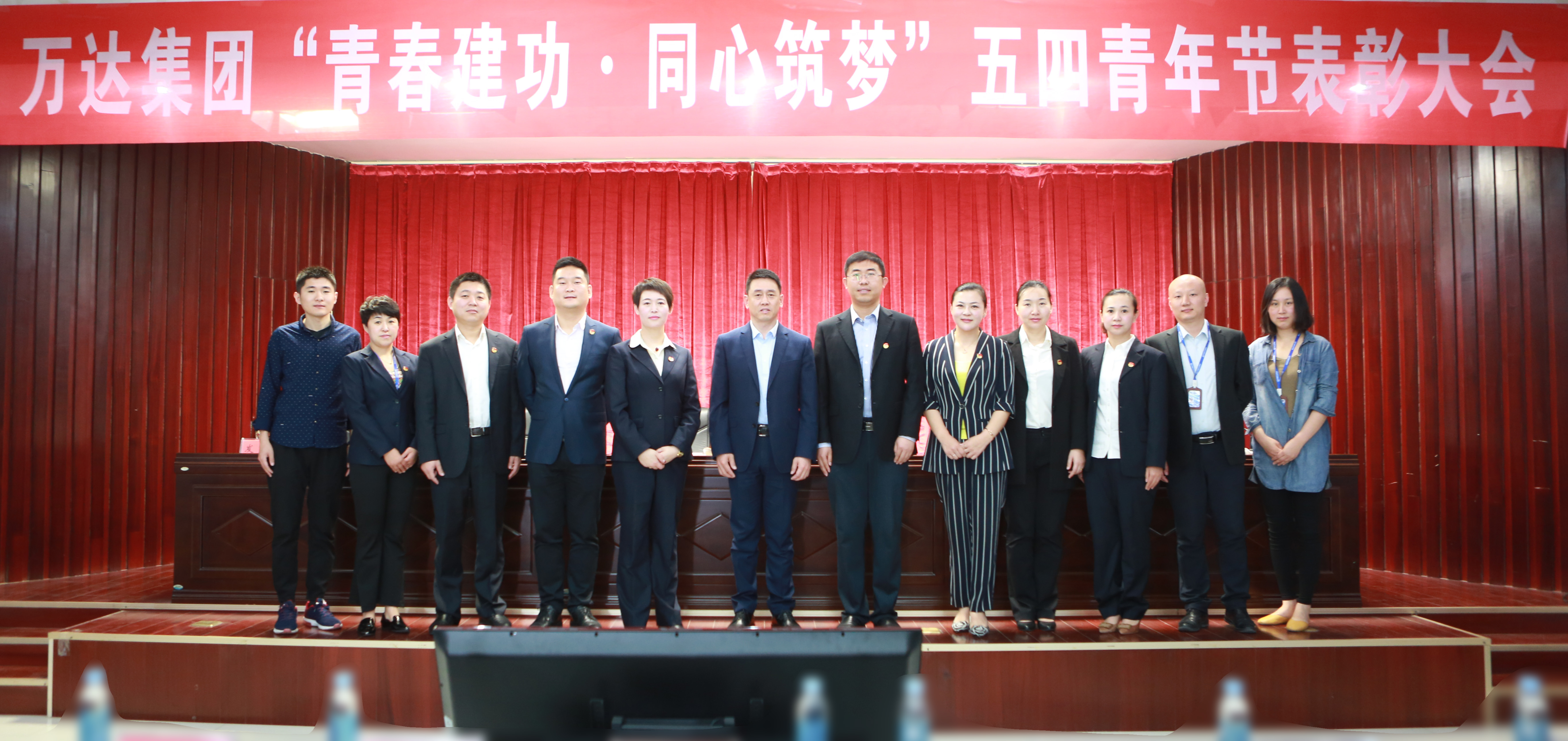 4月28日上午,万达集团“青春建功·同心筑梦”五四青年节表彰大会在万达大厦十二楼隆重举行。团区委副书记王长青、集团公司董事局董事、副总裁巴洪社,集团团委书记杨同英,以及荣获优秀团员的获奖个人、优秀团支部的领奖代表和各单位团员代表,共计150余人参加了大会,集团团委副书记王朝莉主持会议。