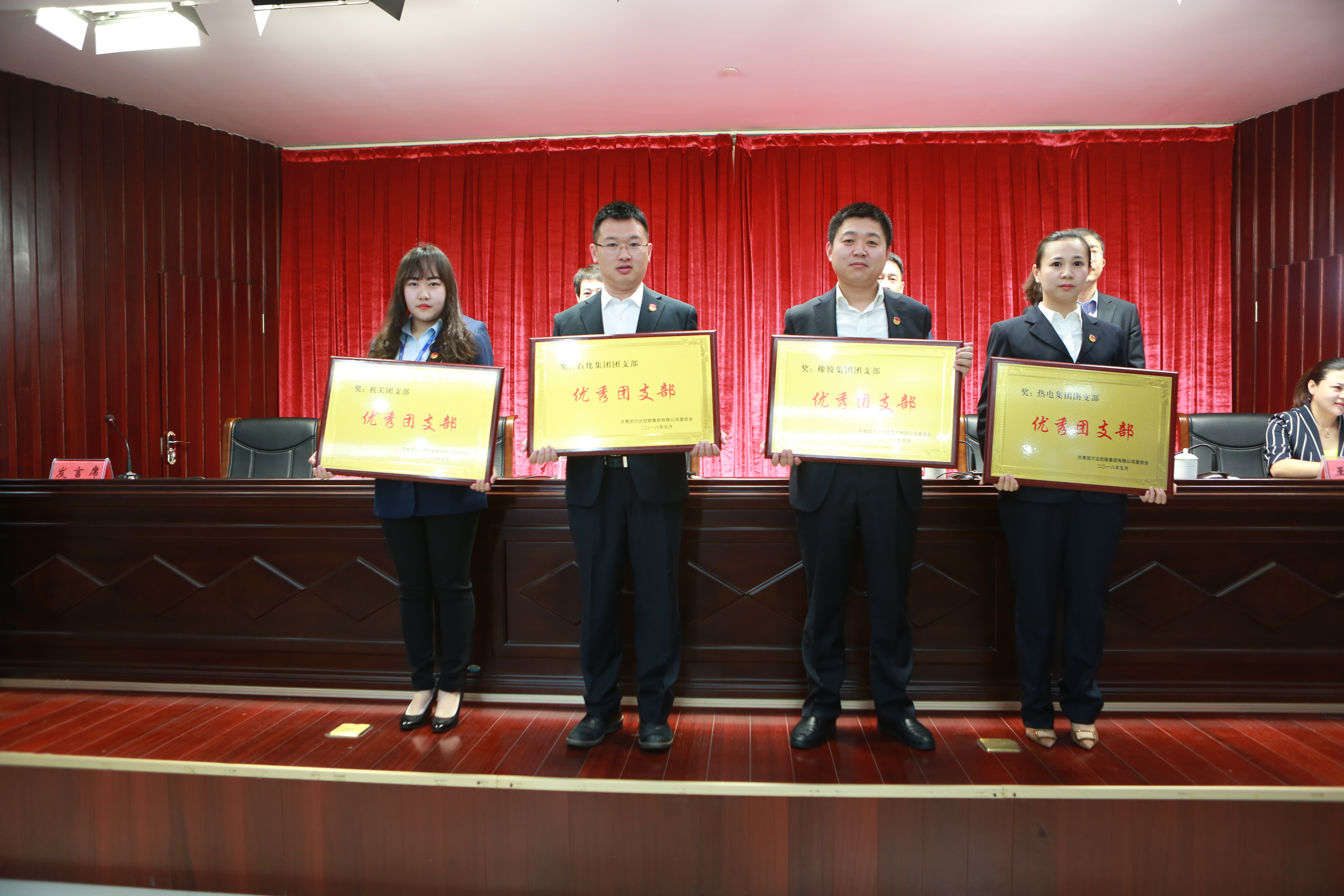 机关团支部、石化集团团支部、橡胶集团团支部、热电集团团支部四家单位荣获“优秀团支部”荣誉称号