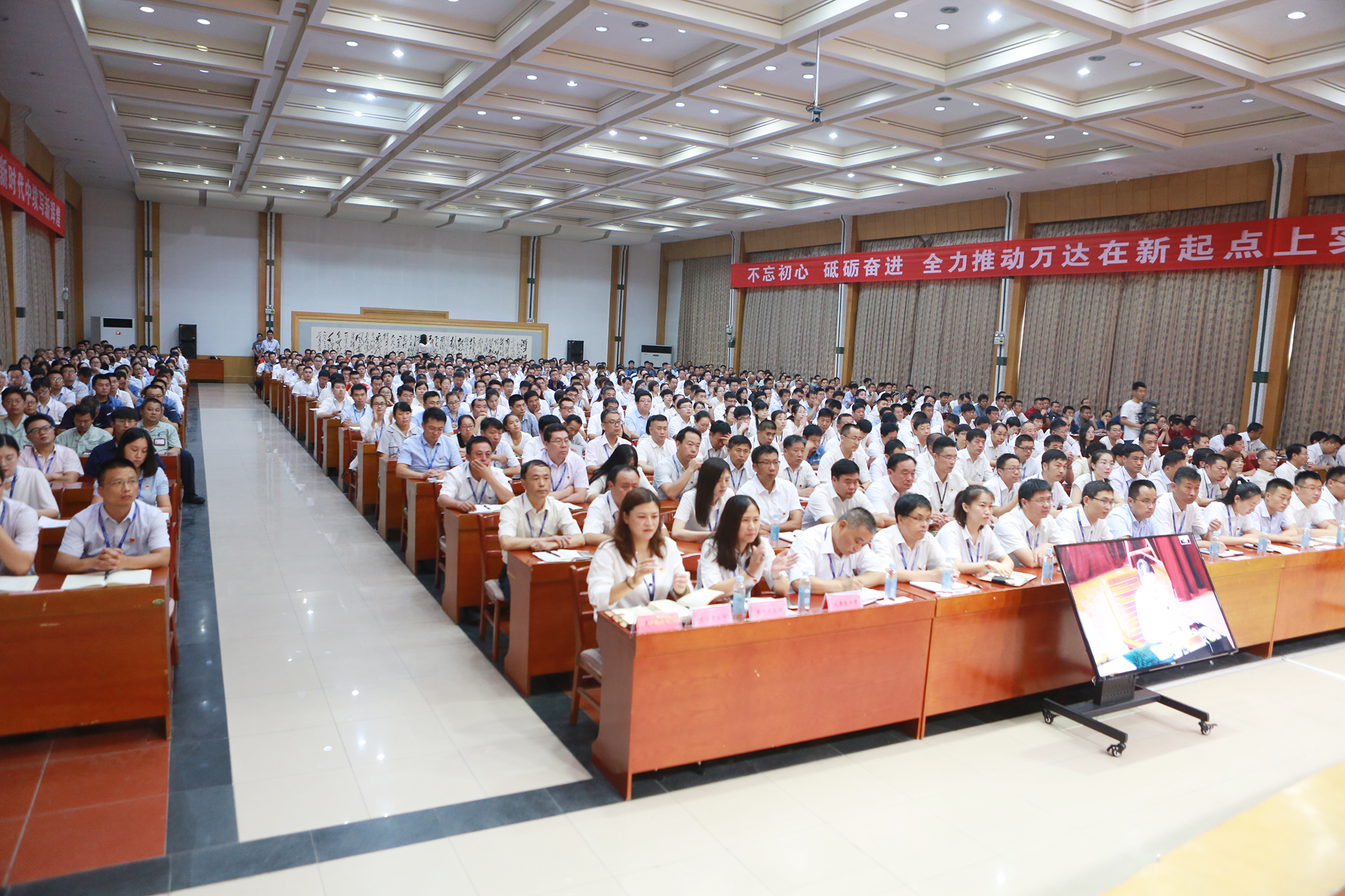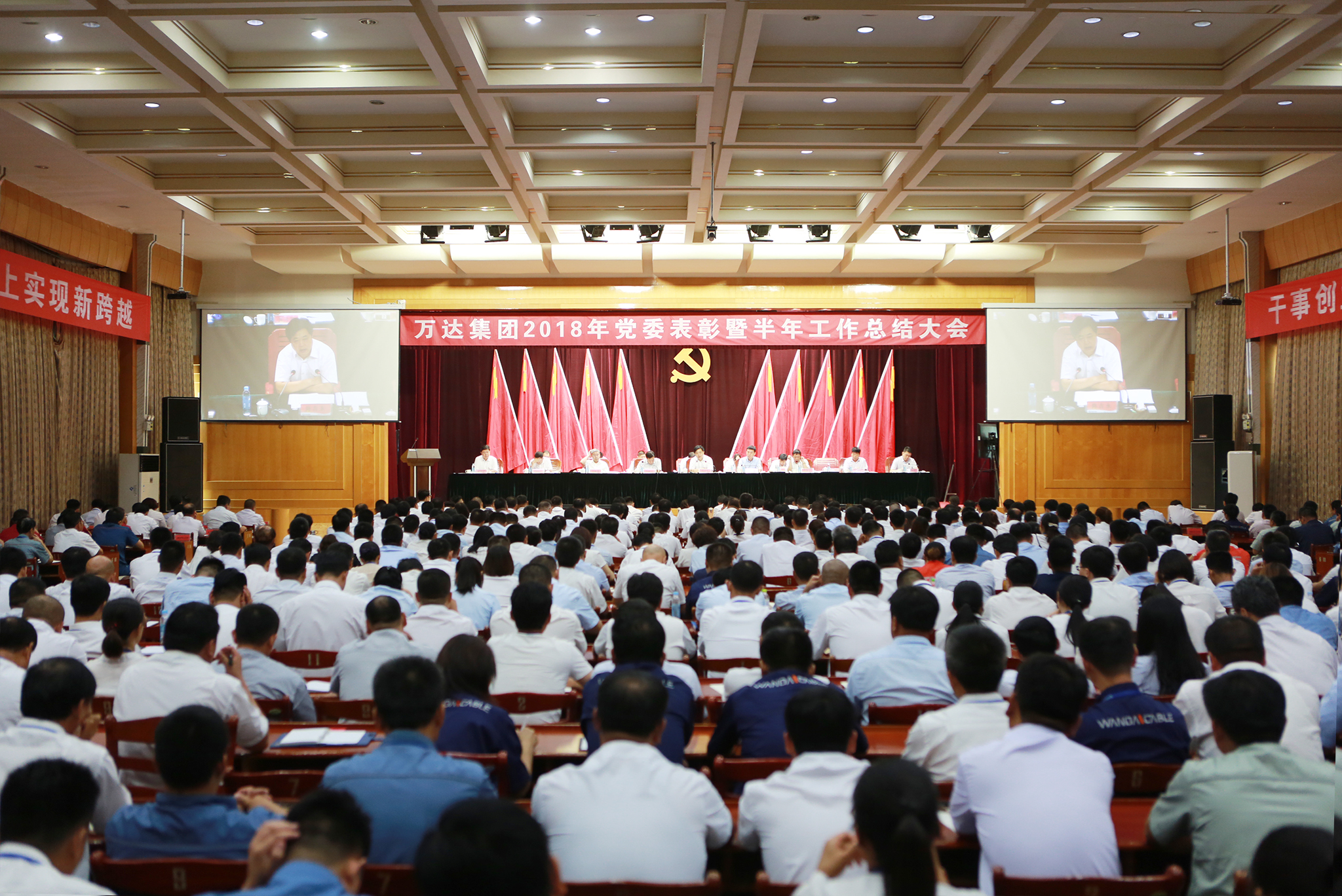 集团公司董事局成员、副总裁,全体党员,外聘专家,公司初级专员以上人员及部分职工代表共计560多人参加了会议。同时,印尼、新加坡、上海、青岛、东营港工业园区、垦利开发区工业园区及胜坨工业园区驻地单位员工通过视频会议的形式收看本次大会直播。会议由万达集团董事局董事、轮值执行总裁巴洪社主持。
