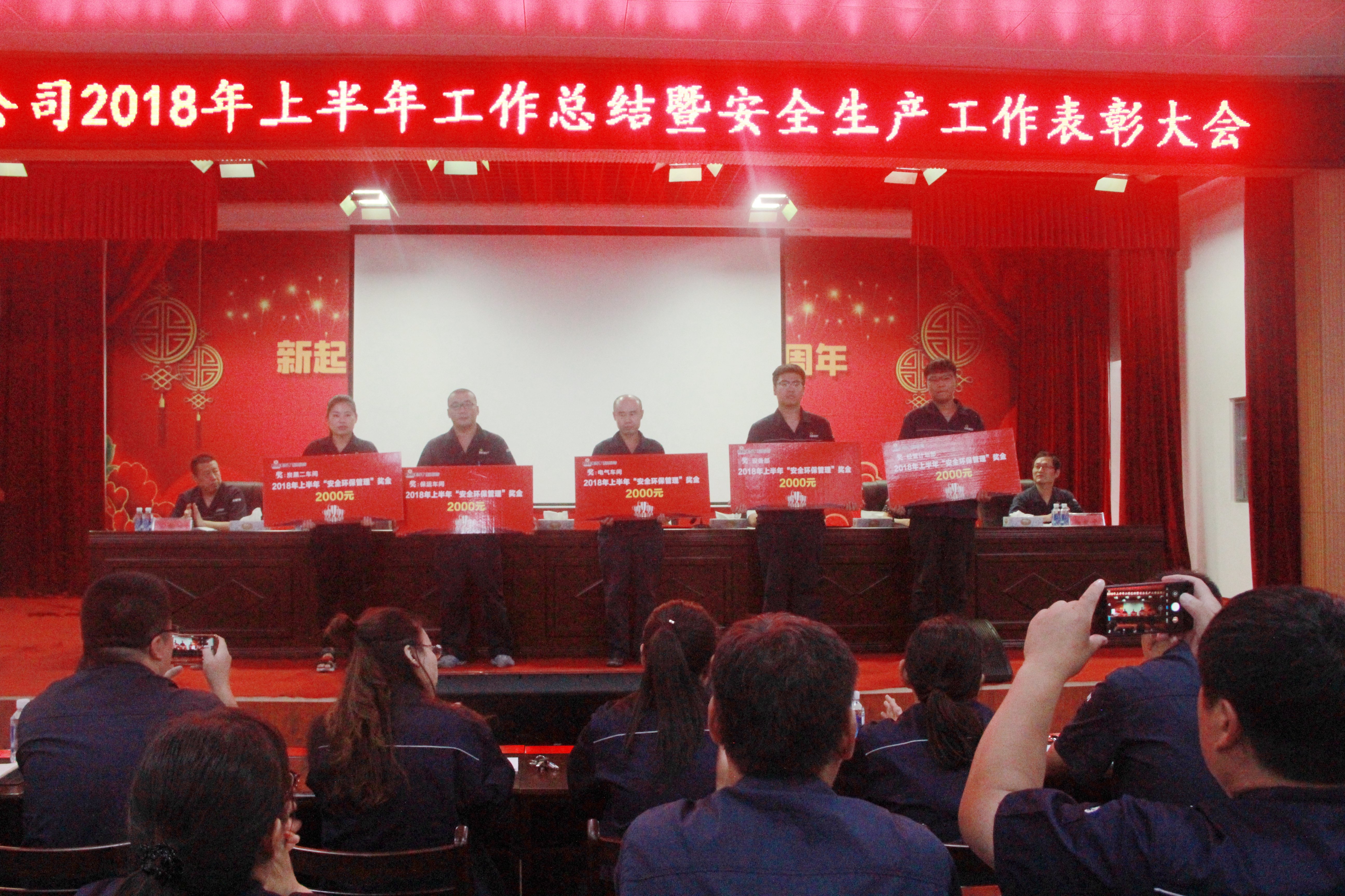 会上,对上半年安全生产工作表现突出的部门、车间及个人进行了表彰;外贸二部等6个部门进行了典型、表态发言;炭黑公司董事长王敏、总经理慈夫山代表公司分别作了2018年上半年工作报告、安全生产工作报告,全面总结了2018年上半年的工作成绩,安排部署了下半年的各项工作;集团公司副总裁、热电集团执行总裁郭新军在讲话中概括了年初以来的发展成绩,科学论证了当前面临的机遇和挑战,对下步工作提出了指导要求。