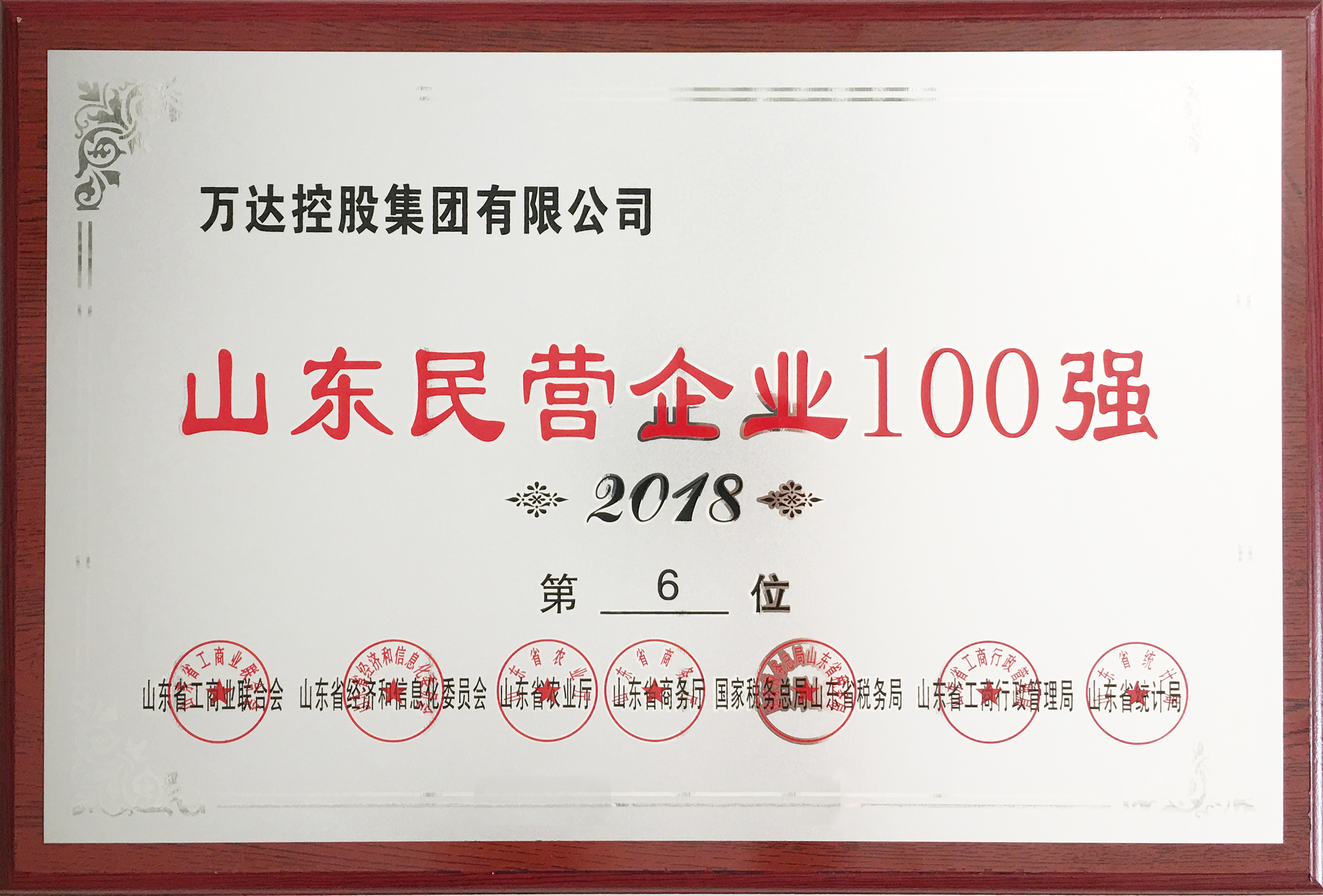 此次会议发布了2018年山东省民营企业100强名单,万达集团荣列此次百强名单第六位。