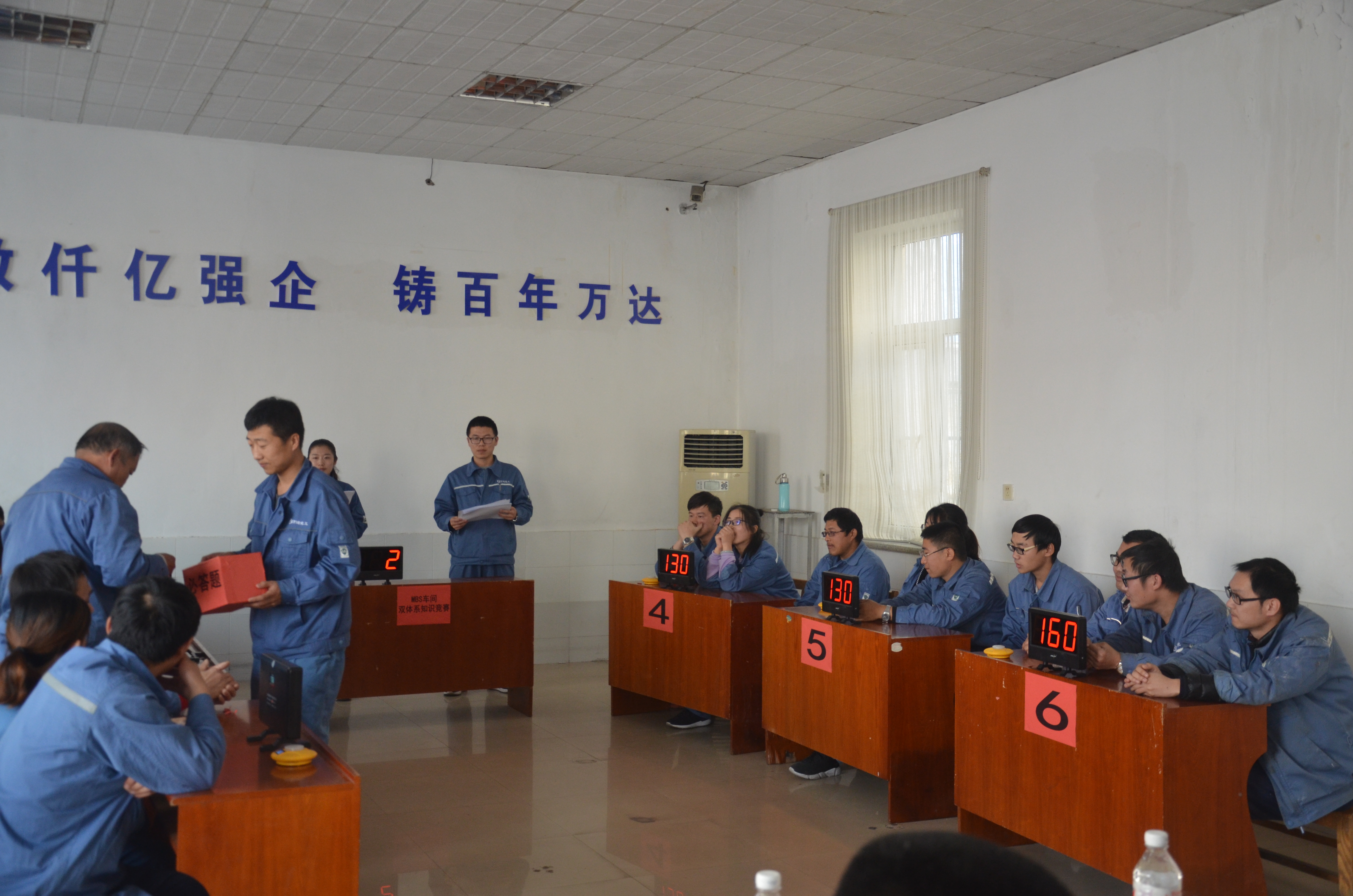 11月20日下午2点,为充分调动车间各班员工对安全双体系的重视程度,进一步宣传双体系知识,提高广大员工对双体系的认识,化工公司MBS车间在化工生产办一楼举办双体系知识竞赛活动,其中化工生产副总周光和、安全副总巴欣民及安全环保部总监刘元德、经理杜相和、MBS车间经理杜如国等参加此活动。