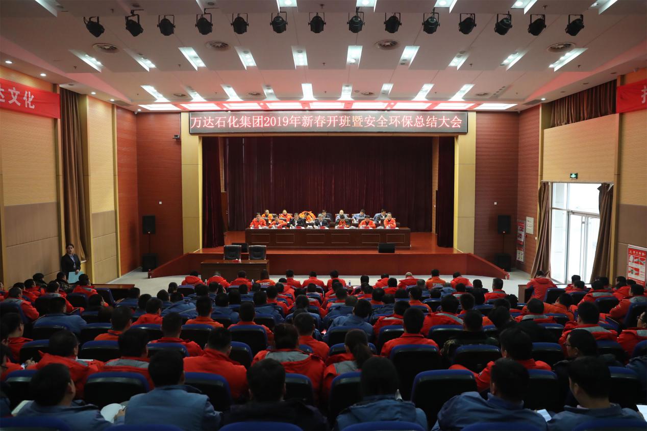 2月12日下午,万达石化集团2019年新春开班暨安全环保总结大会在石化集团大礼堂召开。集团公司董事局董事、副总裁、石化集团主管董事王振卿,董事局董事、副总裁、石化集团董事长苟英群,副总裁、石化集团执行总裁李增刚,各专业化公司董事长、总经理,各事业部总监,初级专员、三大员及以上人员和员工代表参会。会议由集团公司总裁助理、天弘公司董事长李东波主持。