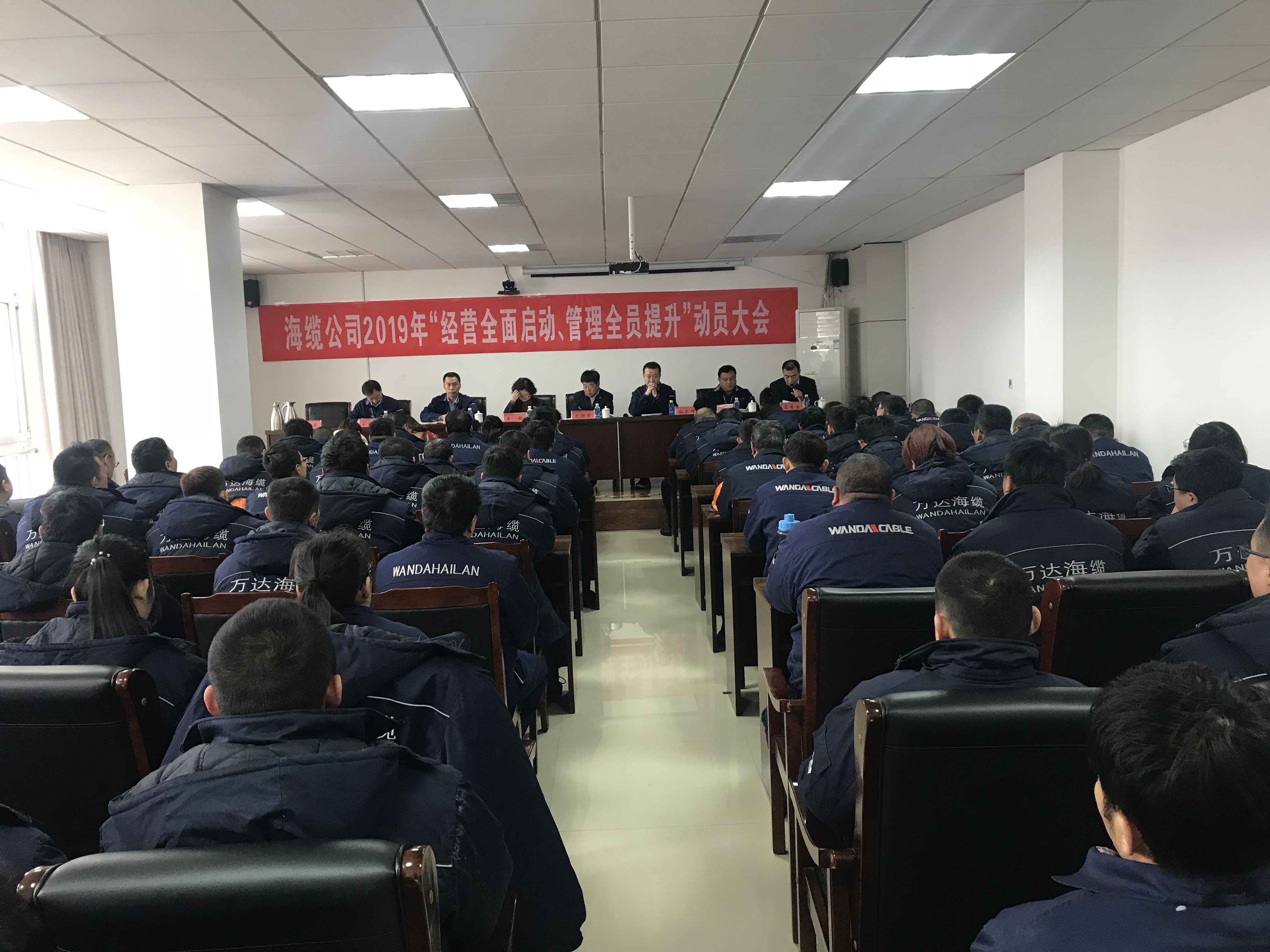 2月12日,万达海缆公司在五楼会议室组织召开2019年“经营全面启动、管理全员提升”动员大会。集团公司董事局董事、副总裁、海缆公司董事长巴银华,集团公司董事局主席助理、独立董事王敏,集团公司总裁助理、海缆公司总经理孙家伟,各单位、部门负责人以及公司全体职工参加了会议。