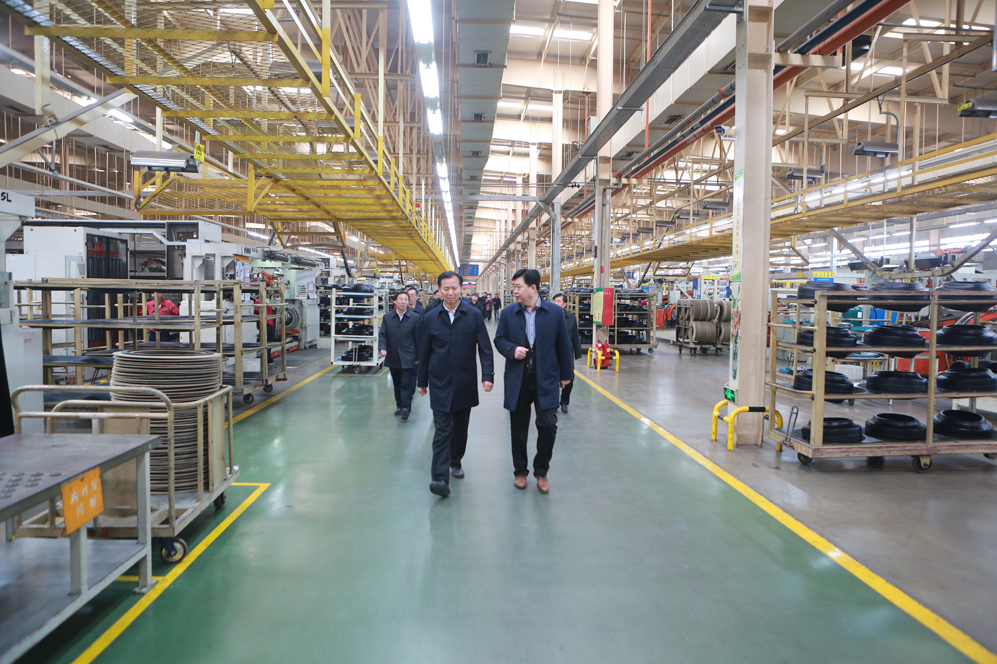 陈泽浦主席一行实地参观了万达宝通1500万条/年半钢胎项目生产车间,并在万达大厦九楼会议室召开专题调研座谈会。
