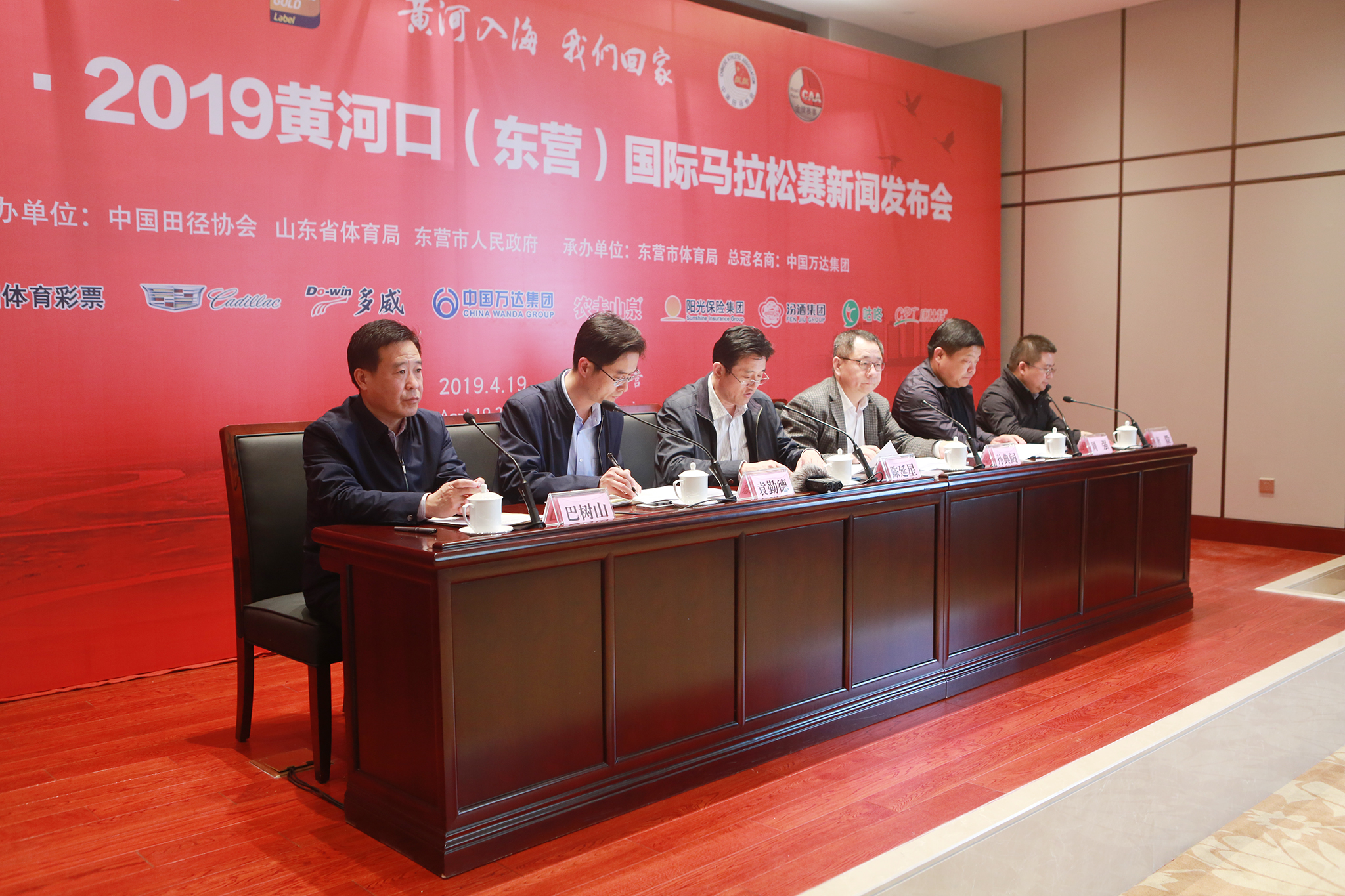 4月19日下午,中国万达·2019黄河口(东营)国际马拉松赛新闻发布会在东营宾馆召开,这是中国万达集团连续十年全球冠名赞助该项体育赛事。发布会上,各有关部门就赛事在组织、电视直播、安全保卫、医疗保障等方面筹备情况做详细介绍,万达集团董事局董事、副总裁巴树山,各赞助商、运动装备商代表、新闻媒体记者及参赛运动员代表参加了发布会。