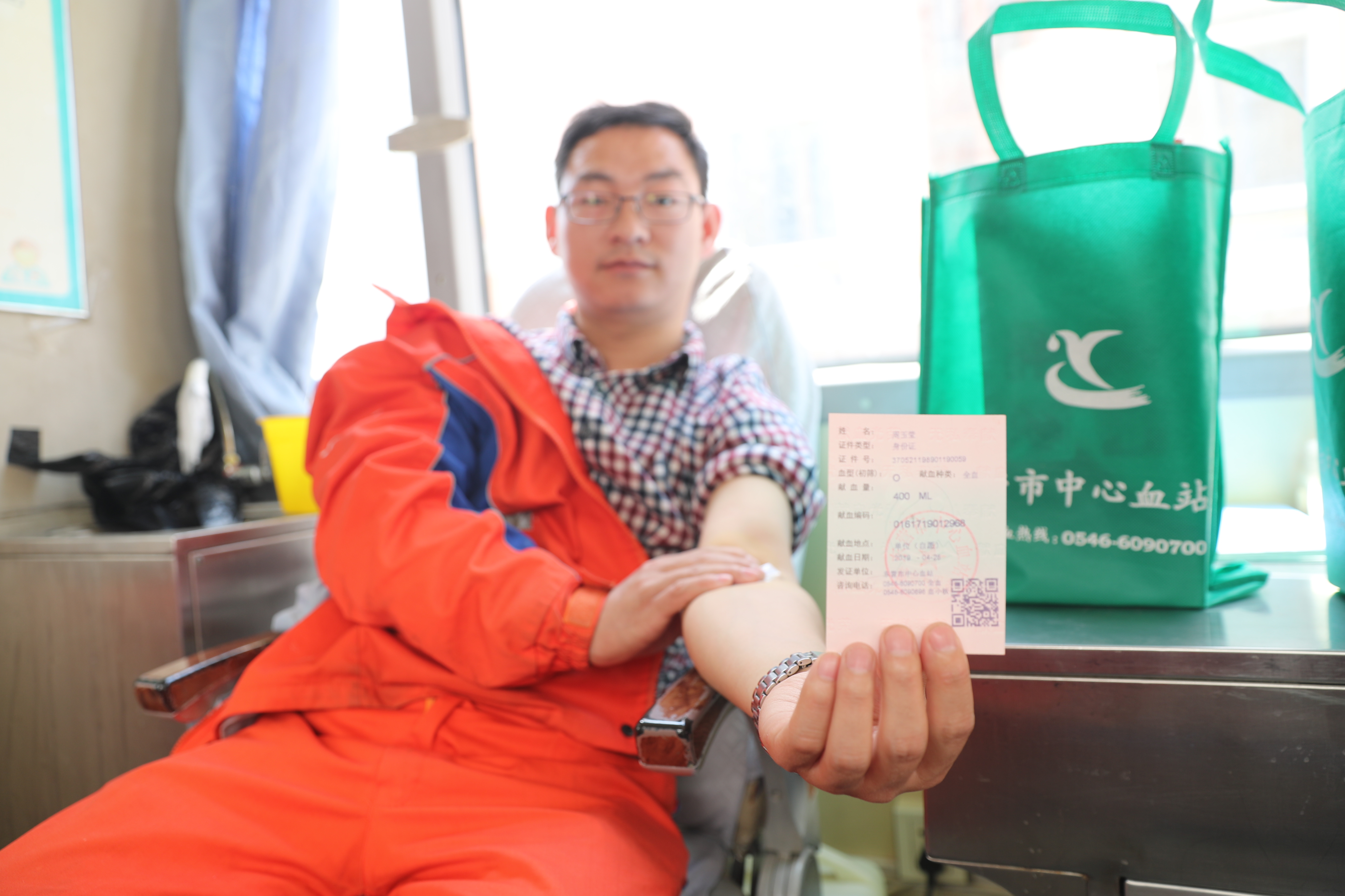 活动现场,献血员工在东营市献血中心工作人员的指导下,自觉排队等候,有序进行各个环节,以自己平凡的行动,进行着爱心的接力。这些前来献血的员工中,既有工作多年的老同志,也有刚刚参加工作的新员工,还有许多同志已经多次参加无偿献血活动。大家用实际行动来履行一个公民的光荣义务,表达着回馈社会、关爱社会的真挚情感和无私奉献精神。