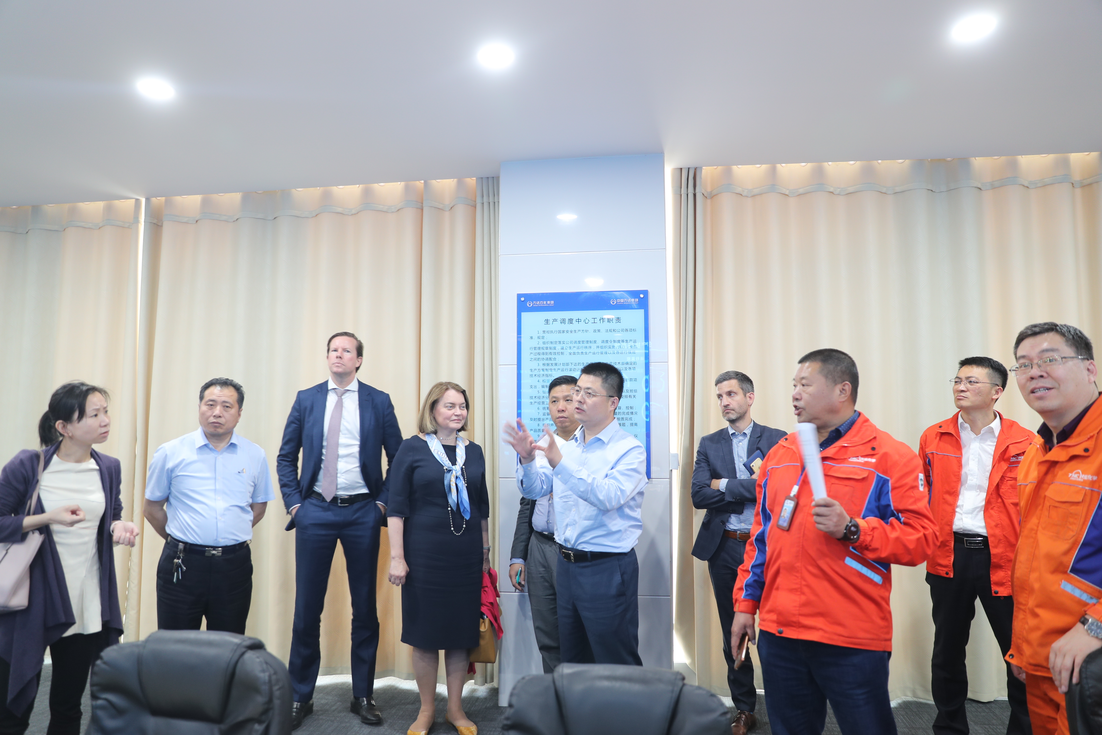 在天弘公司中控室,VTB银行考察团了解了公司当前生产经营概况,并听取了企业有关下一步发展目标、思路和重点项目进展等方面的详细介绍。