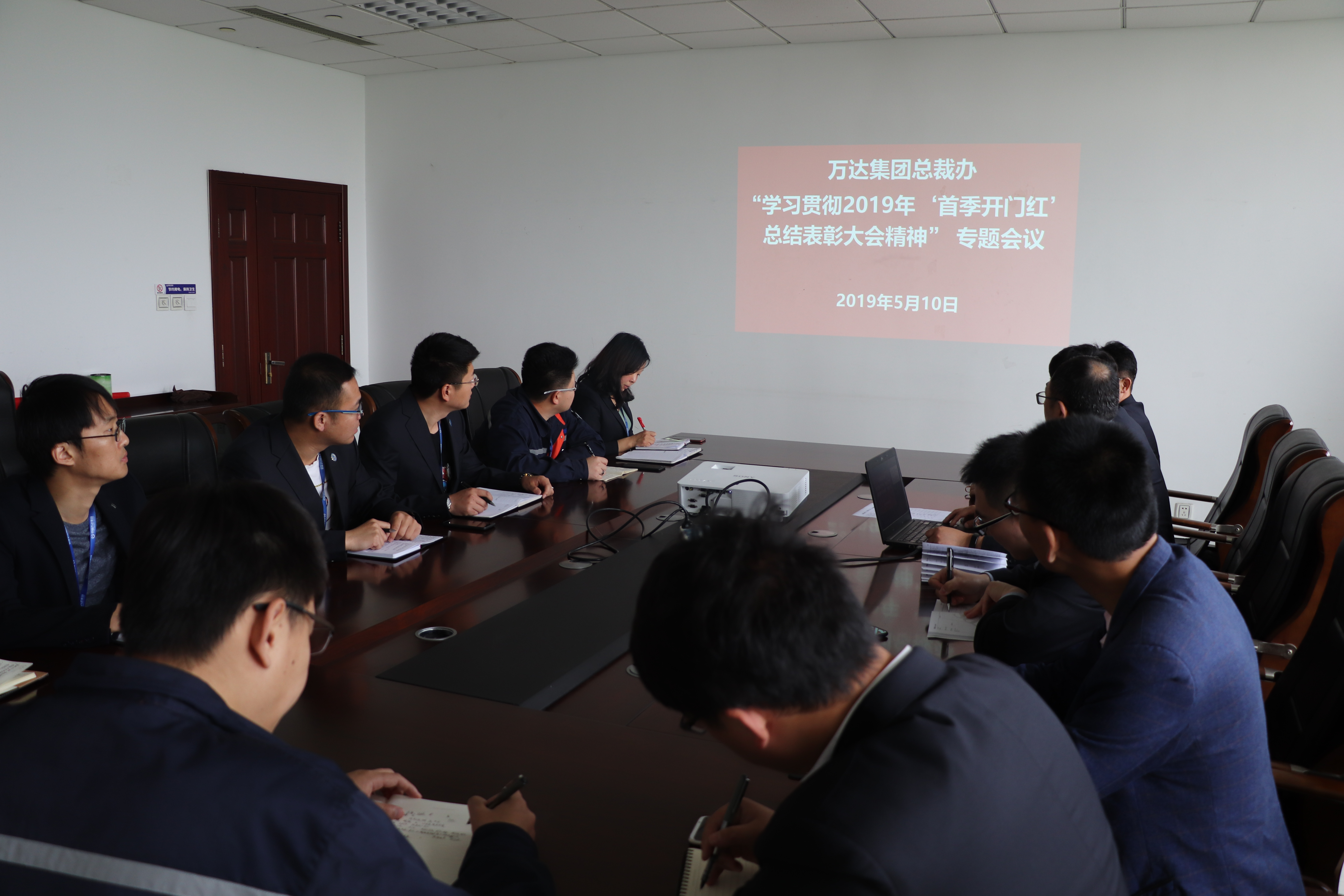 5月10日上午8:30,在万达大厦602会议室,总裁办总经理曲春林主持召开学习贯彻2019年“首季开门红”总结表彰大会精神专题会议,目的是为了更好地全面推进总裁办精益管理等各项工作深入高效开展。