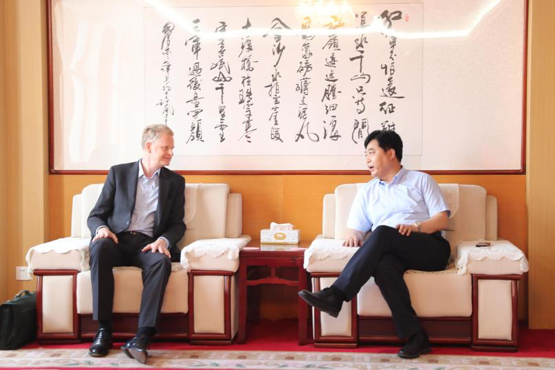 5月22日下午,新加坡托克集团前来万达集团下属石化集团洽谈合作,会谈前,万达集团董事局主席尚吉永与托克集团全球首席风控官Tim Arcedeckne-Butler进行了亲切交流。