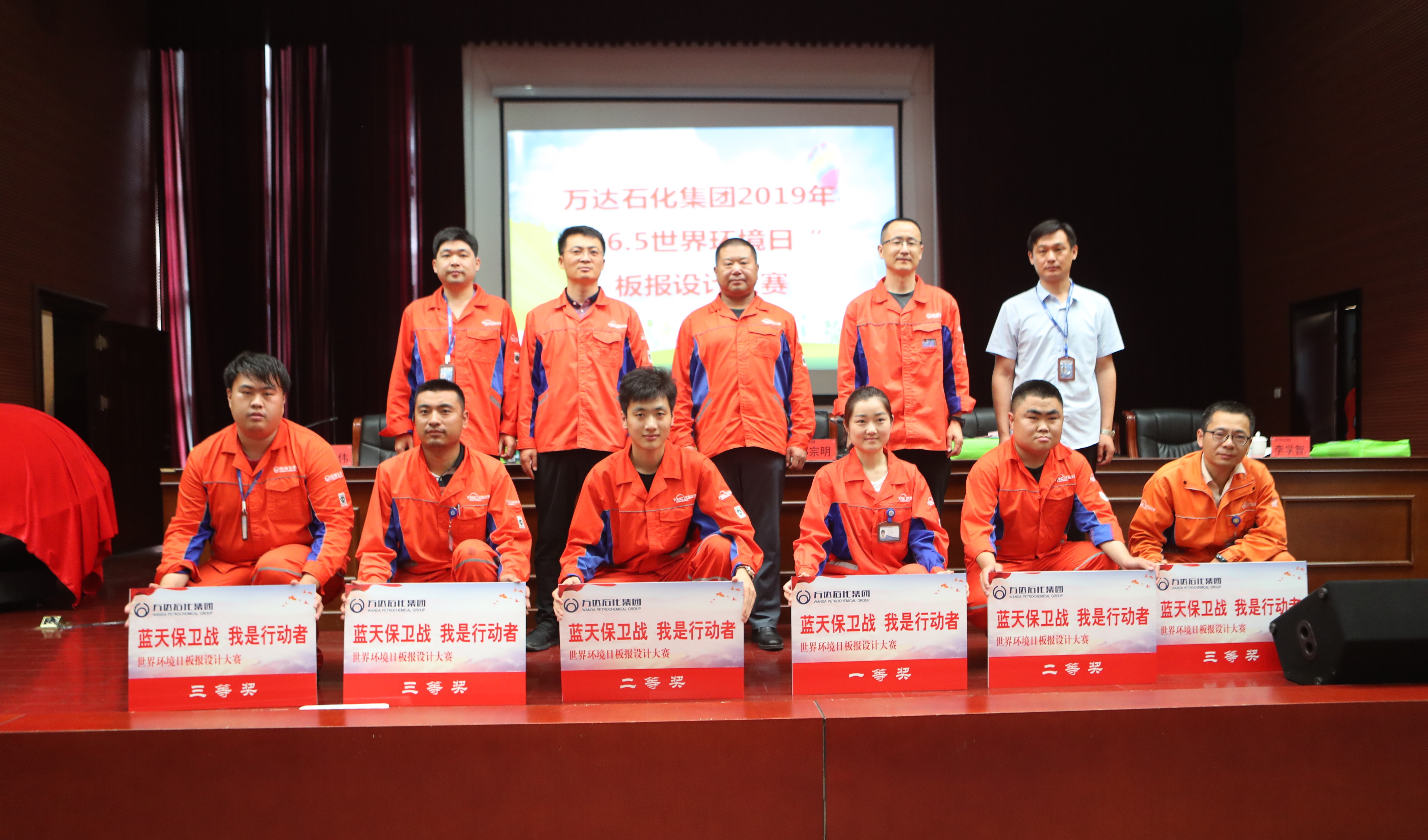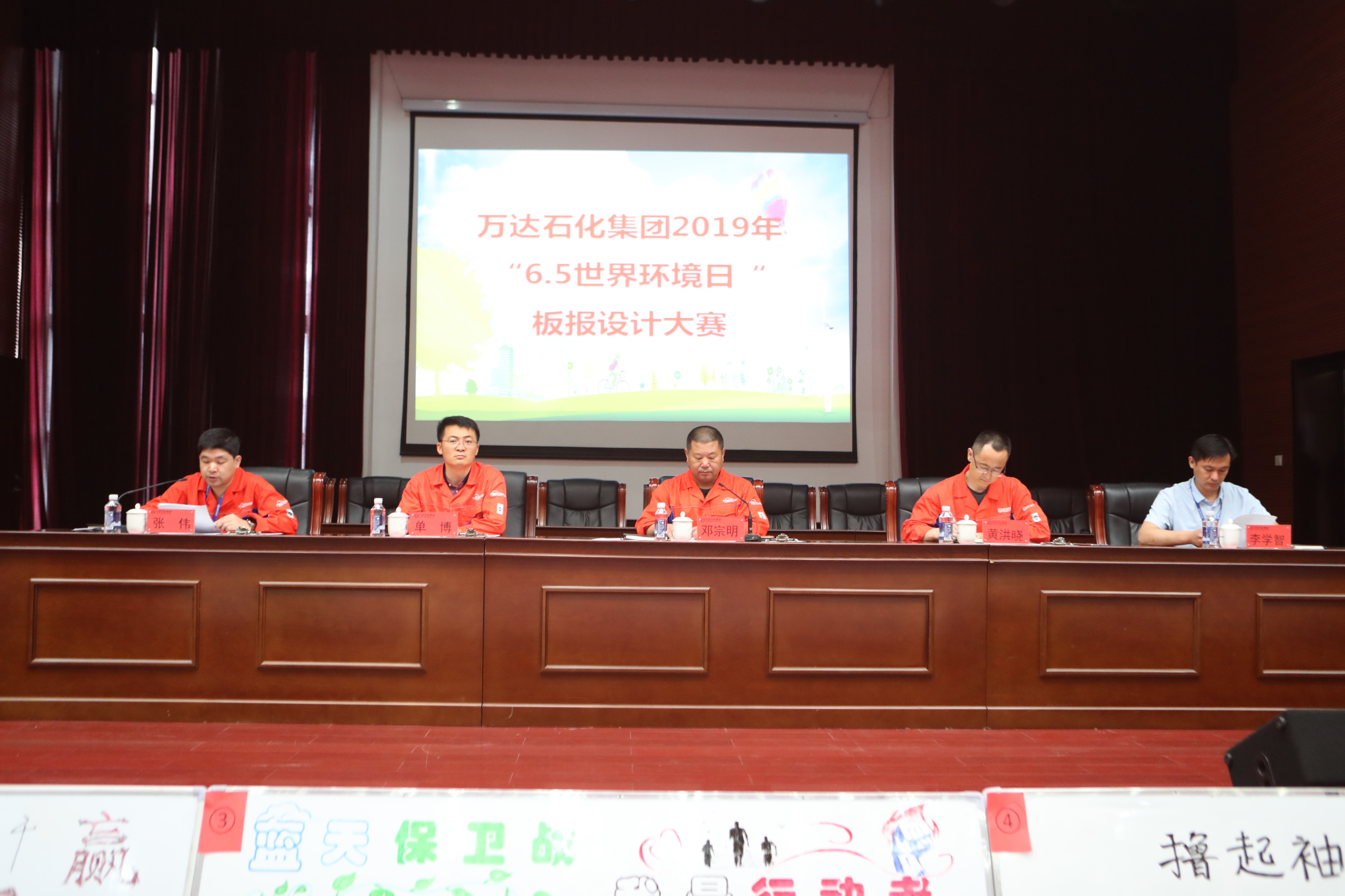 6月5日上午,万达石化集团2019年“6.5世界环境日”板报设计大赛在公司办公楼大礼堂隆重举行。东营港经济开发区环保局领导、天弘公司总经理邓宗明、宏旭公司总经理黄洪晓、石化集团安全环保事业部总监张伟、石化集团综合管理事业部总监单博、集团公司战略与科技管理部副主任李学智及各专业化公司副总经理,各部门、车间负责人,三大员,班组长及员工代表200余人参加。